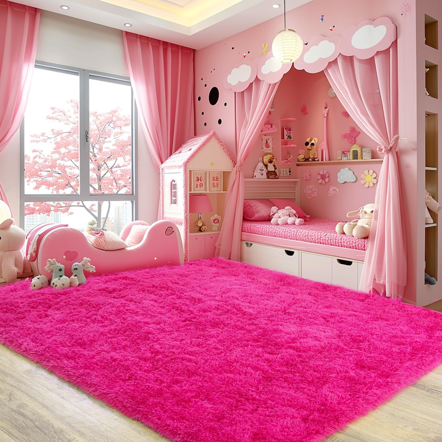 Rezutan Ultra Soft Fluffy Hot Pink Rugs for Bedroom, 4x6 Feet Fluffy Shag Area Rugs for Living Room and Girls Kids Baby Room Decor, Non Slip Nursery Modern Indoor Fuzzy Floor Bedside Carpet