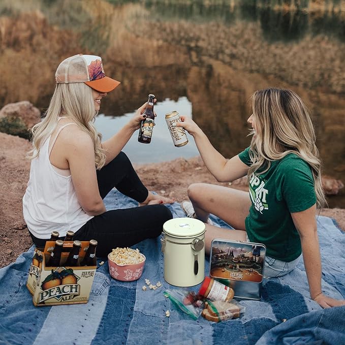 35OZ Coffee Canister for ground coffee with Date Tracker,beige 304 Stainless Steel Kitchen Food Airtight storage container for Coffee Beans or Grounds, Tea, Sugar
