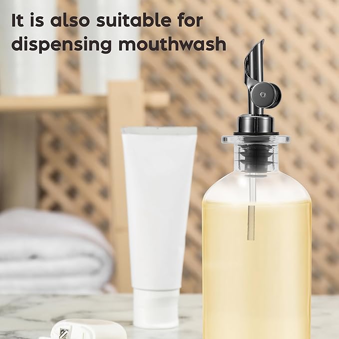 - Sealed Mess Free Pourer Spout — Spend more time enhancing your favorite meals with flavors and less time cleaning up thanks to the mess free tightly sealed black rubber stopper. This cooking oil dispenser bottle for kitchen has a pourer spout that will open and close when the bottle is tilted.