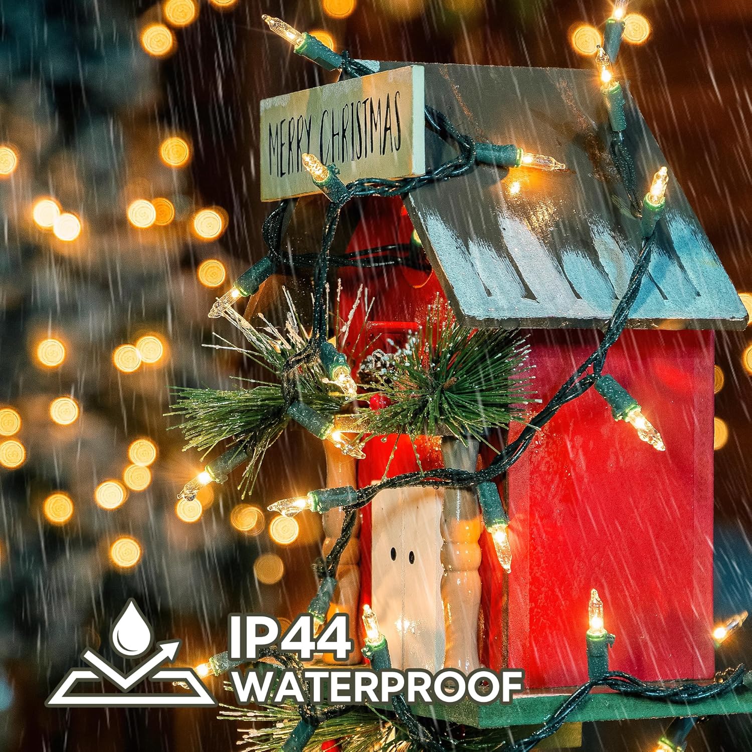 - โจPerfect Christmas Decoration: The string lights possess IP44 waterproof properties and are highly suitable for both indoor and outdoor adornments, encompassing Christmas parties, Valentine's Day, weddings, homes, windows, bathrooms,restaurants, hotels, commercial buildings, festivals, holidays, showcases,shopping centers, trees, wreaths, tree wrappings, patios, pergolas, bushes, hedges, fences, pillars, and so on.