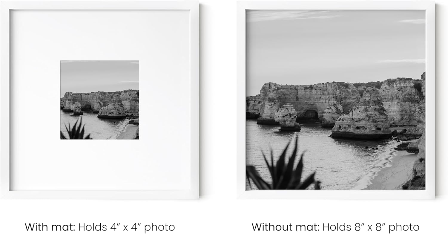 - 8x8 MULTI PACK FRAME SET: Our picture frames 8x8 is meticulously constructed to increase its timelessness and durability. The slim profile of the white picture frames effortlessly blends into any interior decor, adding a contemporary touch. The clean lines and sleek design make the 8x8 frames for pictures multi pack a great choice for those seeking a stylish, understated display solution.