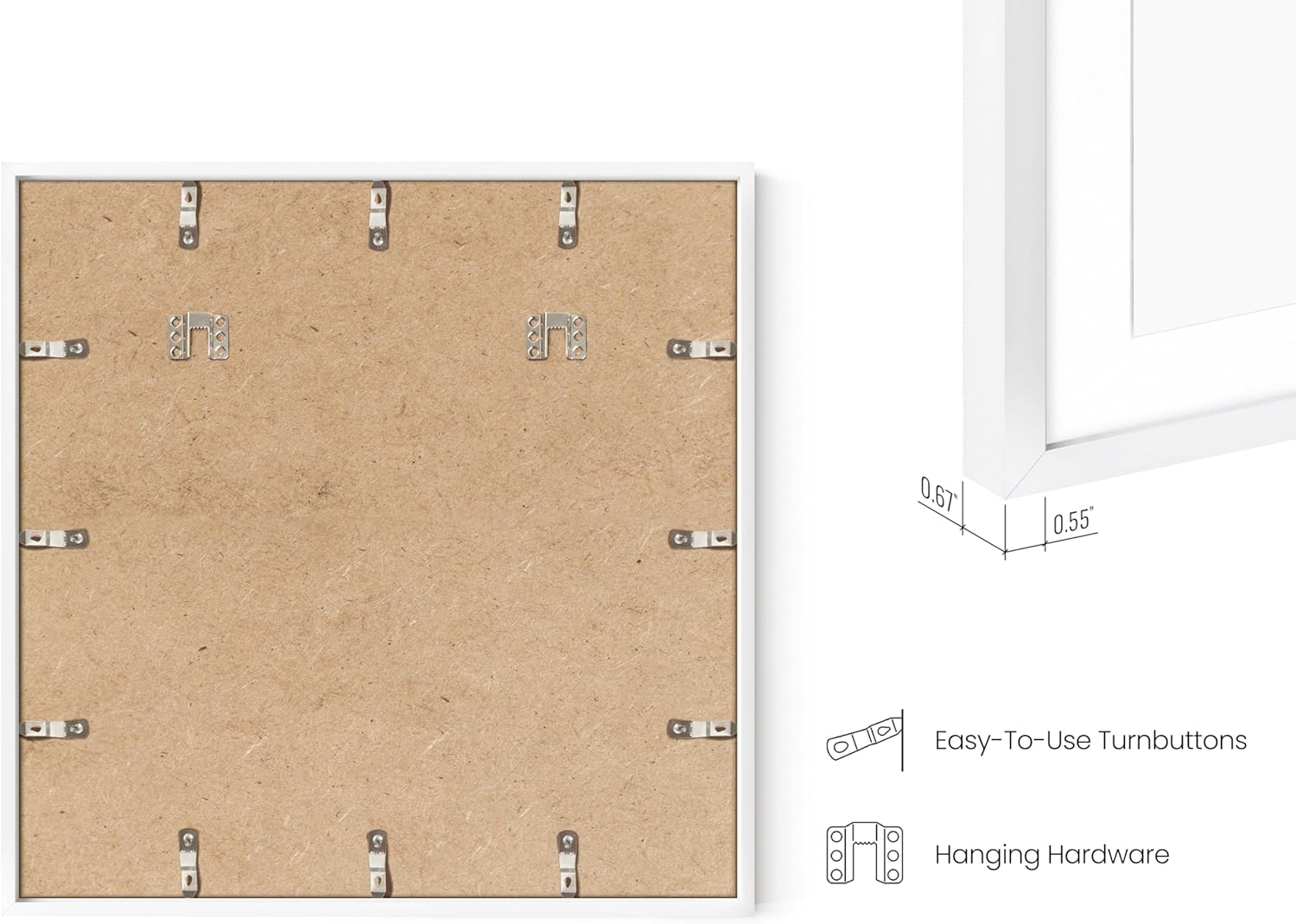 - 20x20 PICTURE FRAMES: Our 20 x 20 picture frames with mat is meticulously constructed to increase its timelessness and durability. The slim profile of the bulk of picture frames effortlessly blends into any interior decor, adding a contemporary touch. The clean lines and sleek design make the bulk photo frames a great choice for those seeking a stylish, understated display solution.