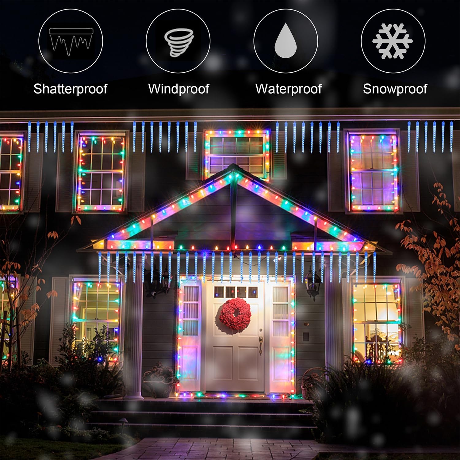 - Perfect Outdoor Decorations: This dreamy icicle meteor shower lights is ideal for variety indoor and outdoor decorations: Christmas, party, Valentine's Day, wedding, home, window, eave, roof, front yard, porch, patio, also for commercial building, shopping center etc