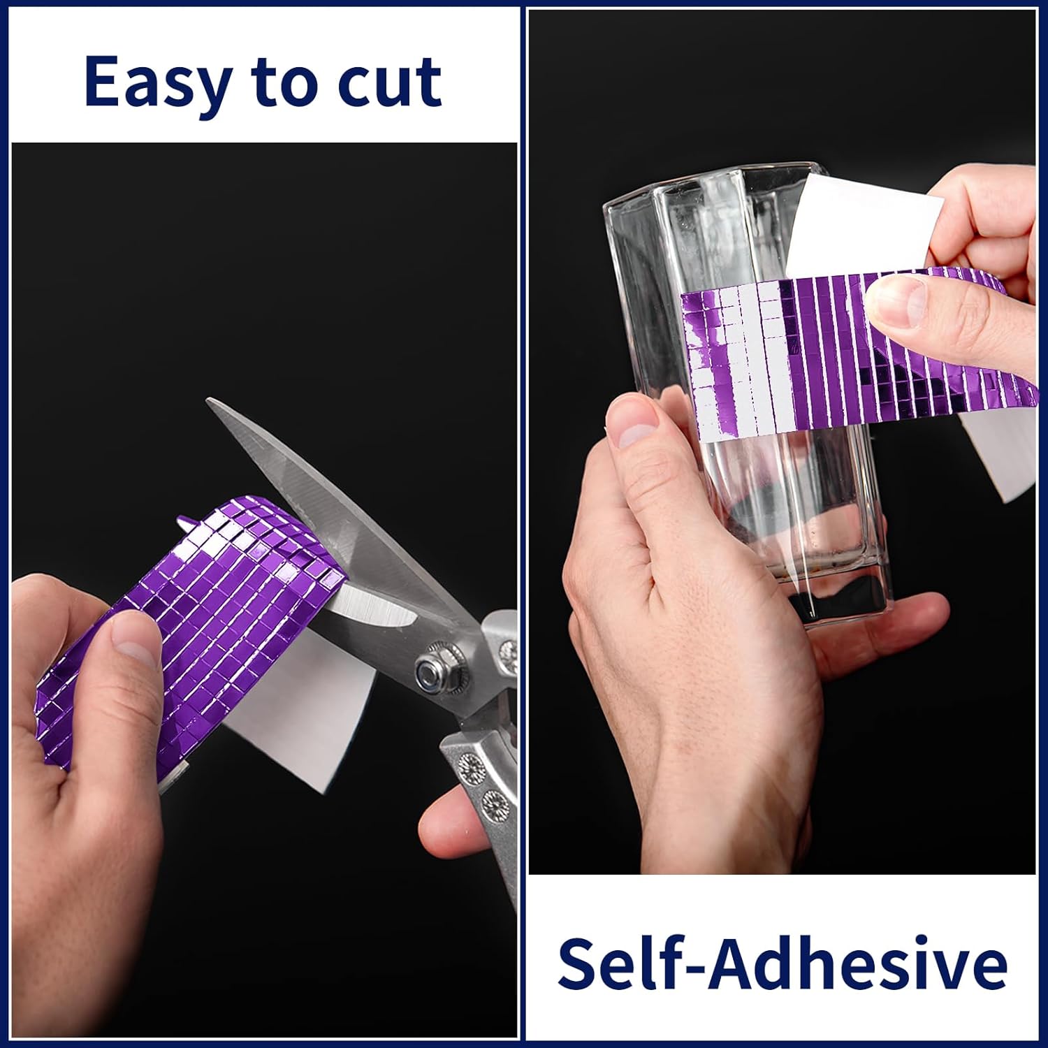 Art3dwallpanels 6 Pack Self Adhesive Glass Mirror Mosaic Disco Tiles Small Square Mirror Sticker for for DIY Disco Ball, Disco Cowboy Hat, Vase, Bottle, Interior Decoration, 2364 Pieces, Purple