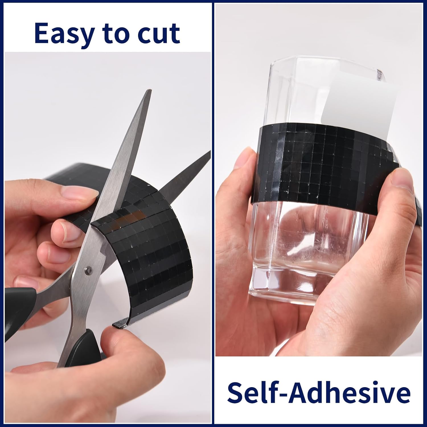 Art3dwallpanels 6 Pack Self Adhesive Glass Mirror Mosaic Disco Tiles Small Square Mirror Sticker for for DIY Disco Ball, Disco Cowboy Hat, Vase, Bottle, Interior Decoration, 2364 Pieces, Black