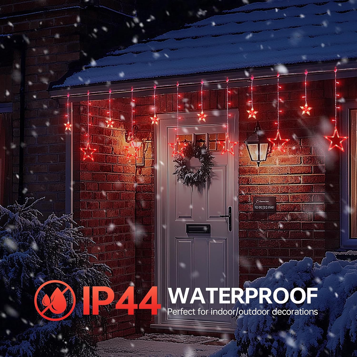 - Waterproof&High Quality:Our red window string lights set UL certified.The lights are made of high quality material,IP44 Waterproof design make the Lights are suitable for use on rainy or snowy. Designed 30V powered by low- voltage,so you can touch it with no worry during installation.Perfect decor for every where such as garden,pathway,backyard, patio etc.