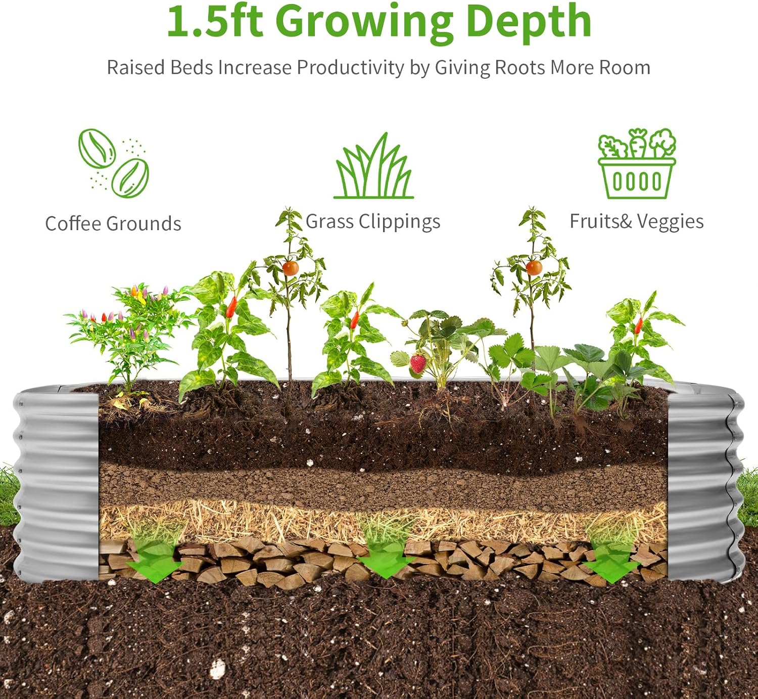 Land Guard Galvanized Metal Raised Garden Bed Kit, 8x4x1.5ft Large Planter Boxes Outdoor, Oval Gardening Box, Patio Garden Planter Box for Vegetables (Silver)