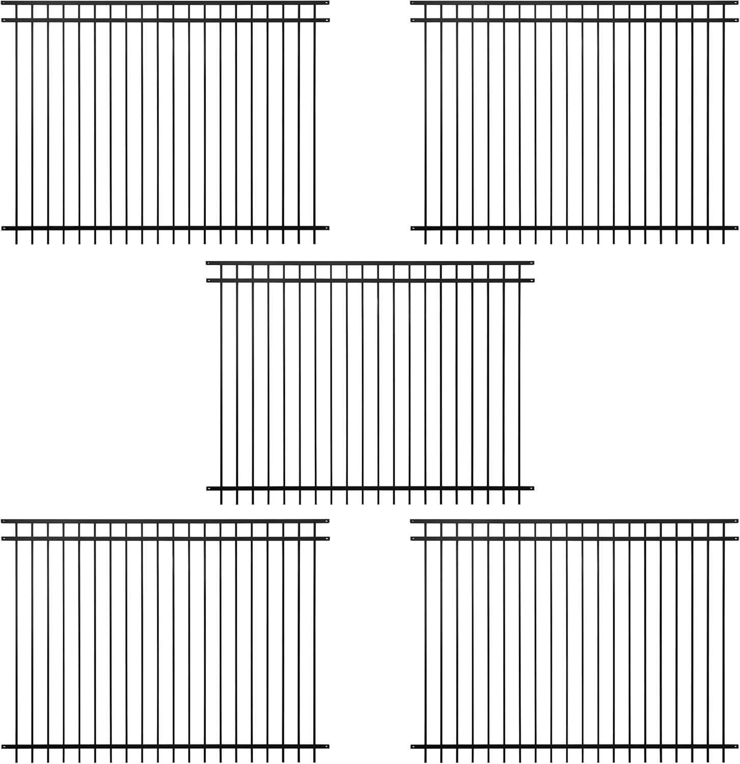 Fencer Wire Pack of 5 Heavy Duty Flat Top Fence Barrier Panel, 6FT Height X 8FT Width Anti-Rust Metal Fencing Panel, 2” Diameter Steel Outdoor Decorative Garden Fence Panel for Yard, Pool, Patio
