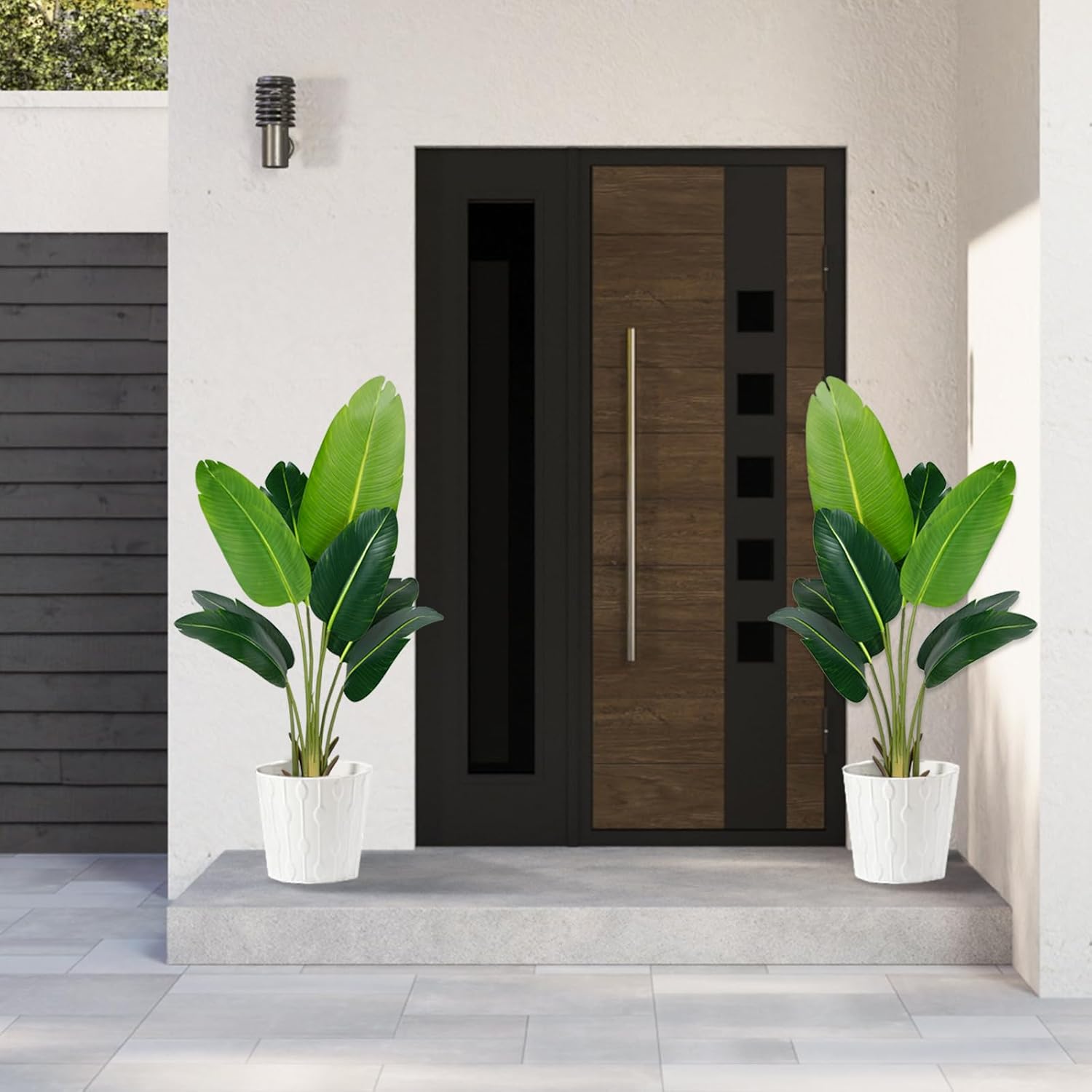 Artificial Bird of Paradise Plant 4Ft Fake Tropical Palm Tree with 8Trunks Faux Banana Leaf Trees in Pot for Home Indoor Outdoor Office Modern Decor Housewarming Gift(2Pcs)