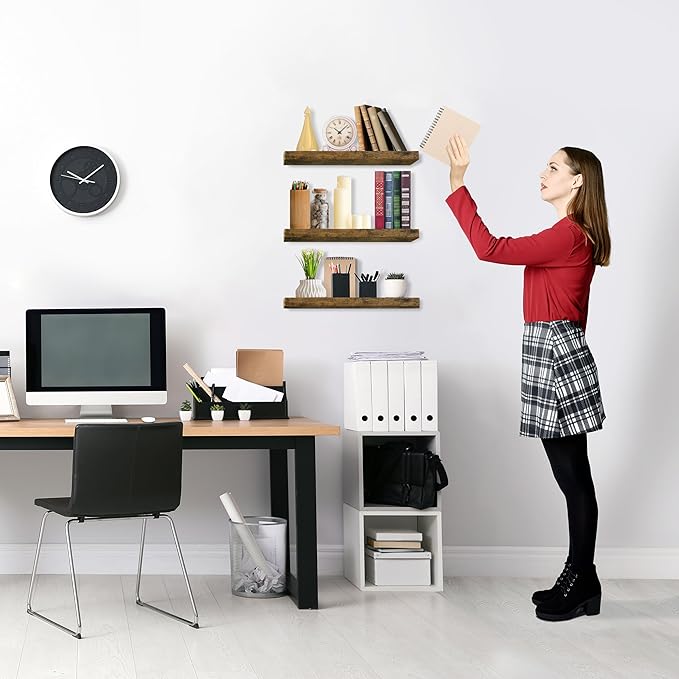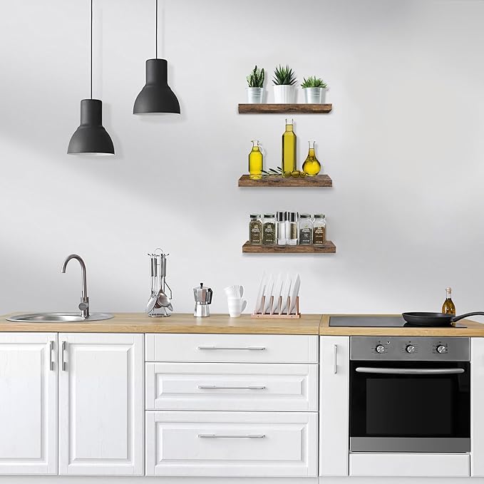 Sorbus Floating Shelves for Wall, Bathroom Shelves Wall Mounted for Kitchen, Bedroom, Bathroom Storage Over Toilet, Hanging Book Shelf for Wall Home Decor Living Room (Rustic Brown, 3 Pack)