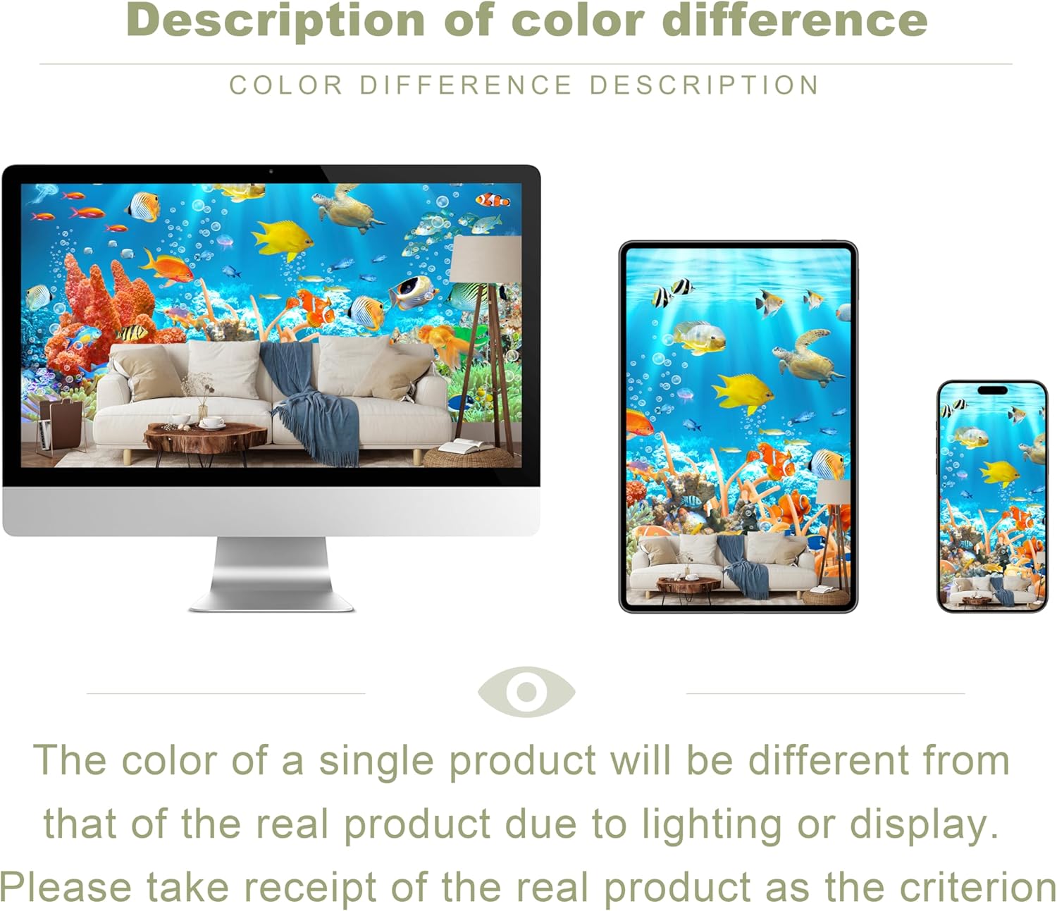 - MATERIAL - Fish murals for walls is made of premium silk material. Ecological printing with lightfast, UV resistant lasting colors. Durable and waterproof, fadeless and odorless, non-toxic and eco-friendly.