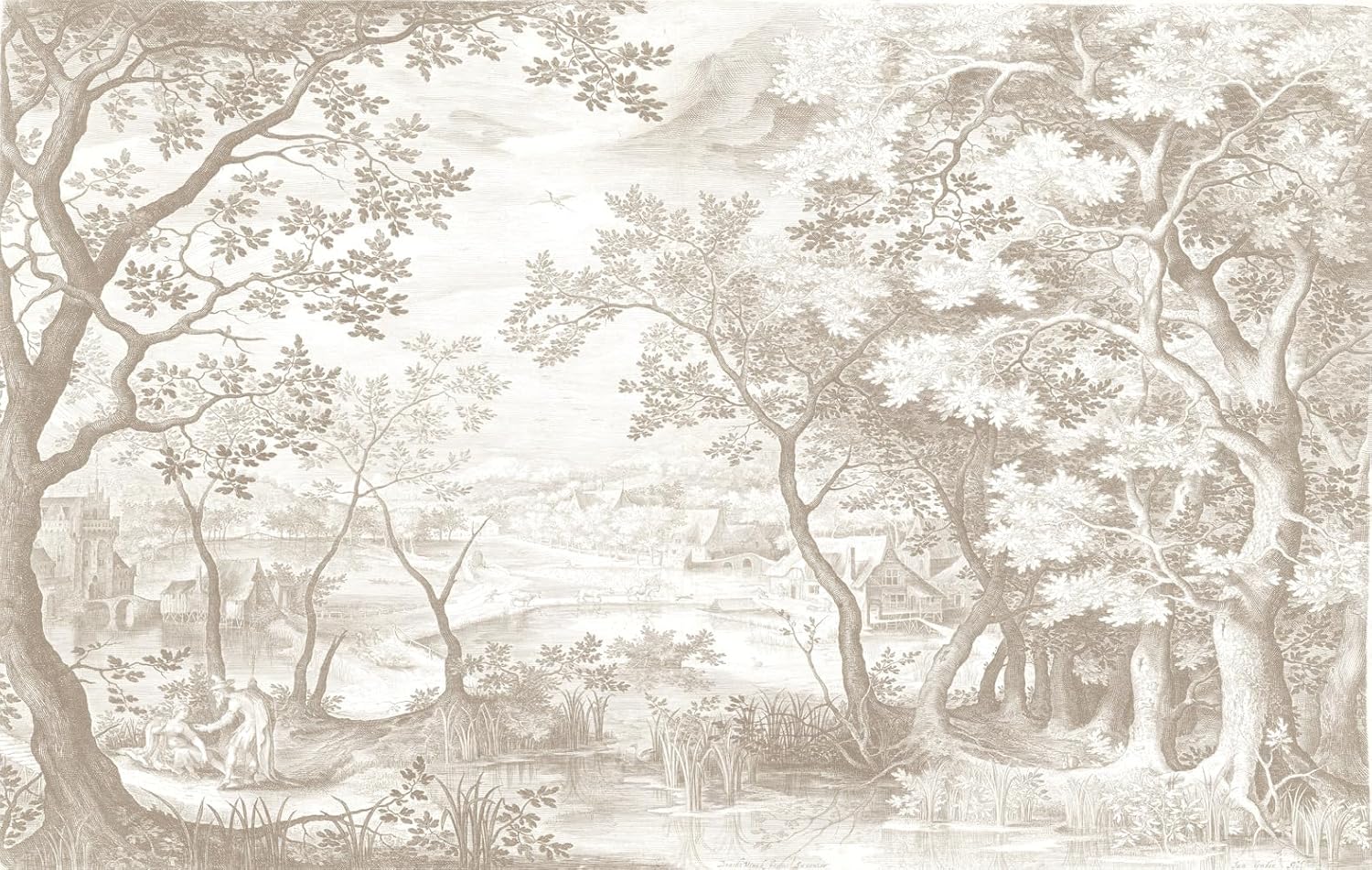 Vintage Beige Forest Woodland Mural Wallpaper for Bedroom Living Room (Not Peel n' Stick)