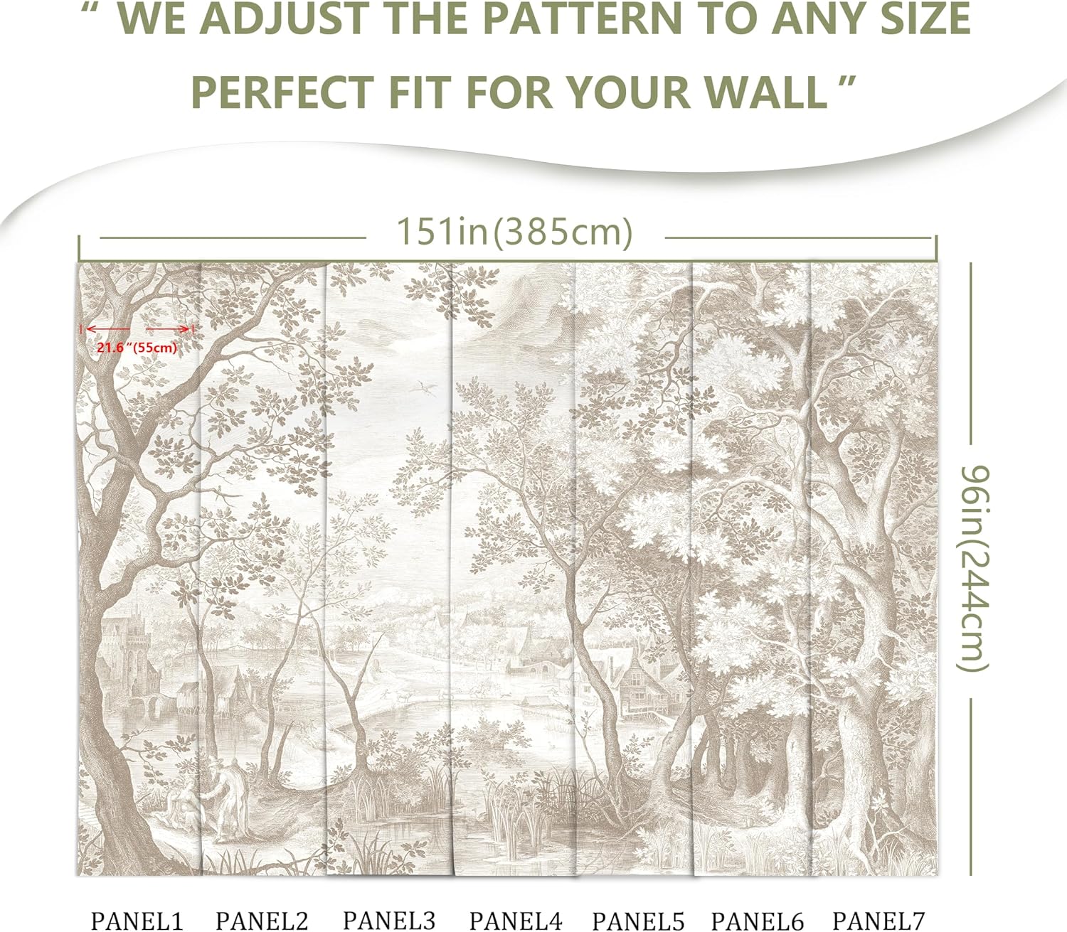 - MURAL SIZE - Approx.151"x96"(Wx H), This mural wallpaper cut into 7 strips. All is marked with number under each strip. You can put it in sequential order before you install it