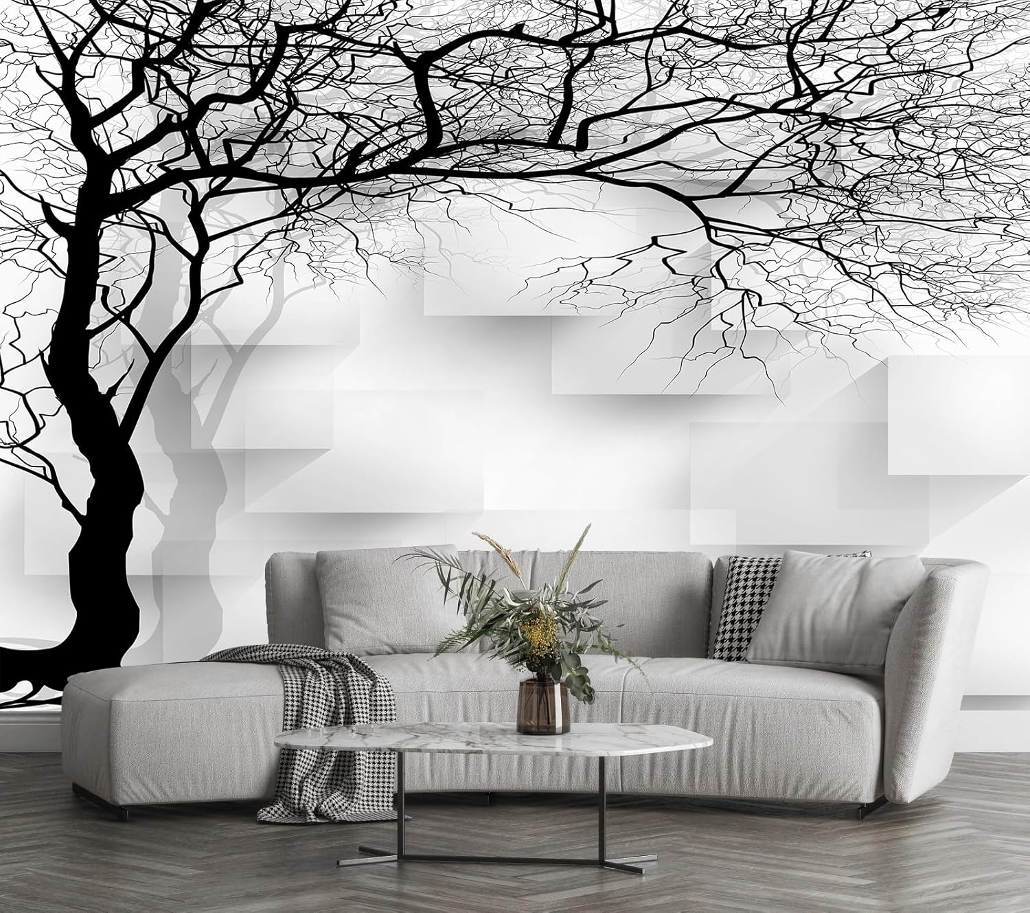 Grey Trees Wallpaper 3D Geometry TV Sofa Background Wall Mural for Bedroom Living Room (Not Peel n' Stick)