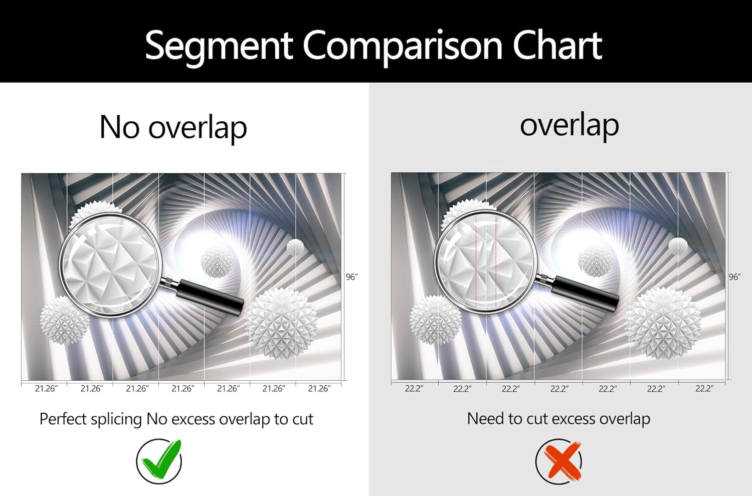 - Mural Size: The total size of this mural wallpaper is 149" x 96" / 378CM x 244CM (W x H), cut into 7 pieces, each measuring 21.26" x 96", for easy installation.