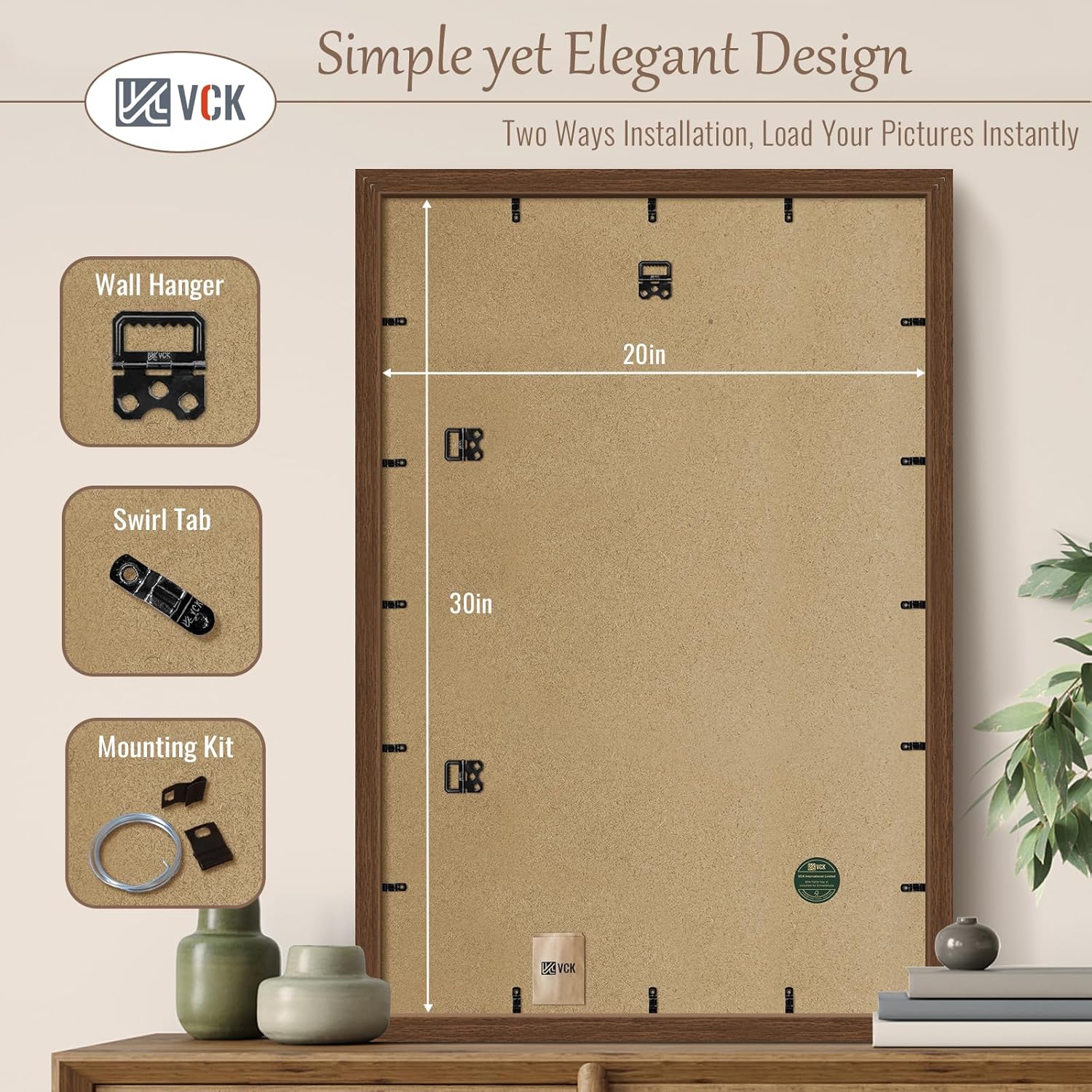 VCK 20x30 Brown Poster Frame 3 Pack, Wood Picture Frame with Exclusive Wood Grain, Wall Mounting Hanging