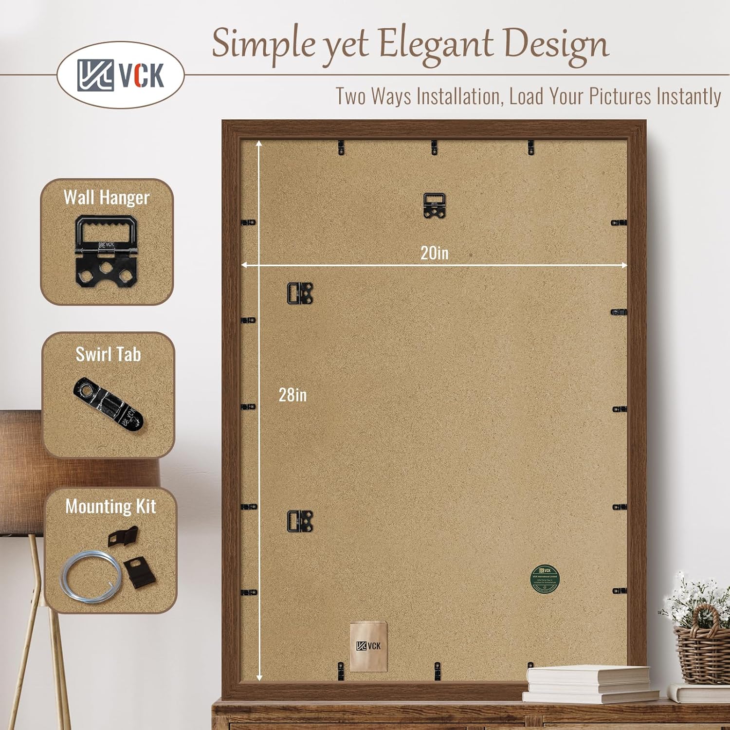 - Elegant Charm: VCK brown wood-grain picture frame. Drawing inspiration from Appalachian ancient forests, seamlessly blends modern minimalist design with natural aesthetics to create a cozy ambiance, perfect for showcasing your favorite memories