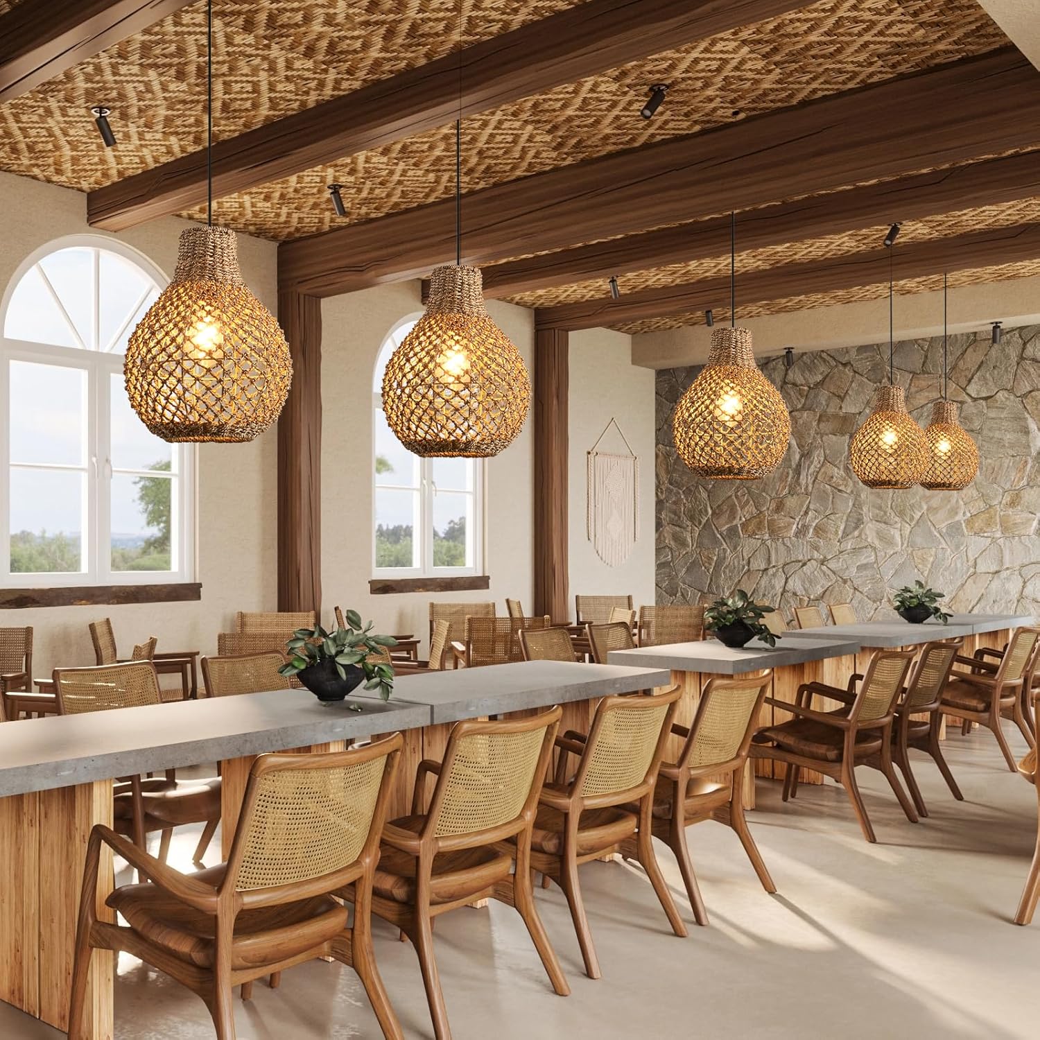 - Simple installation: This is a hand-woven rattan lamp; includes installation instructions and accessories required for installation; installation is very convenient; for safe and reliable installation; we recommend that you contact a professional electrician directly