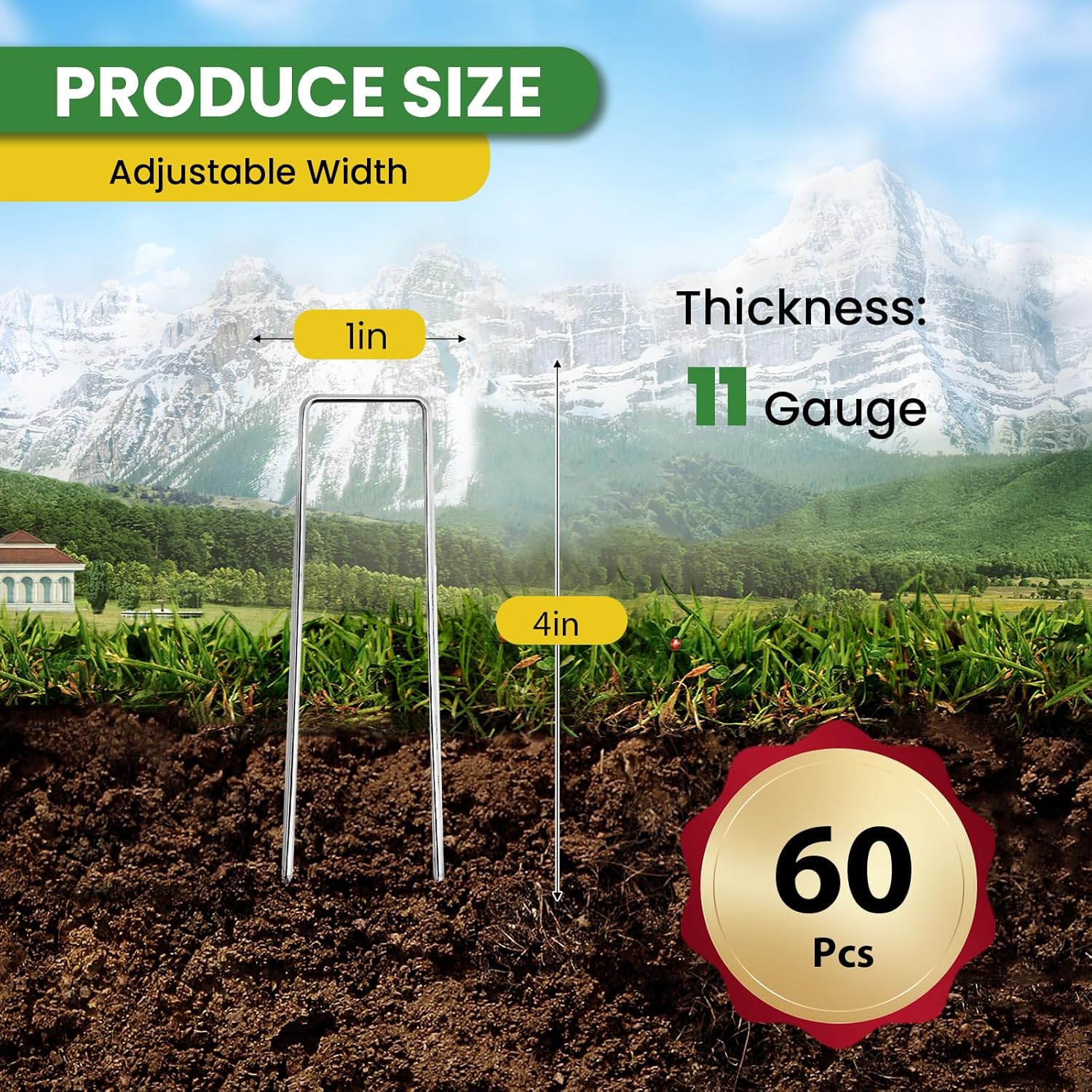 - Professional Grade Landscape Staples: Our set includes 60 garden ground stakes, each measuring 4 inches in length and 1 inch in width, to meet everyday outdoor needs