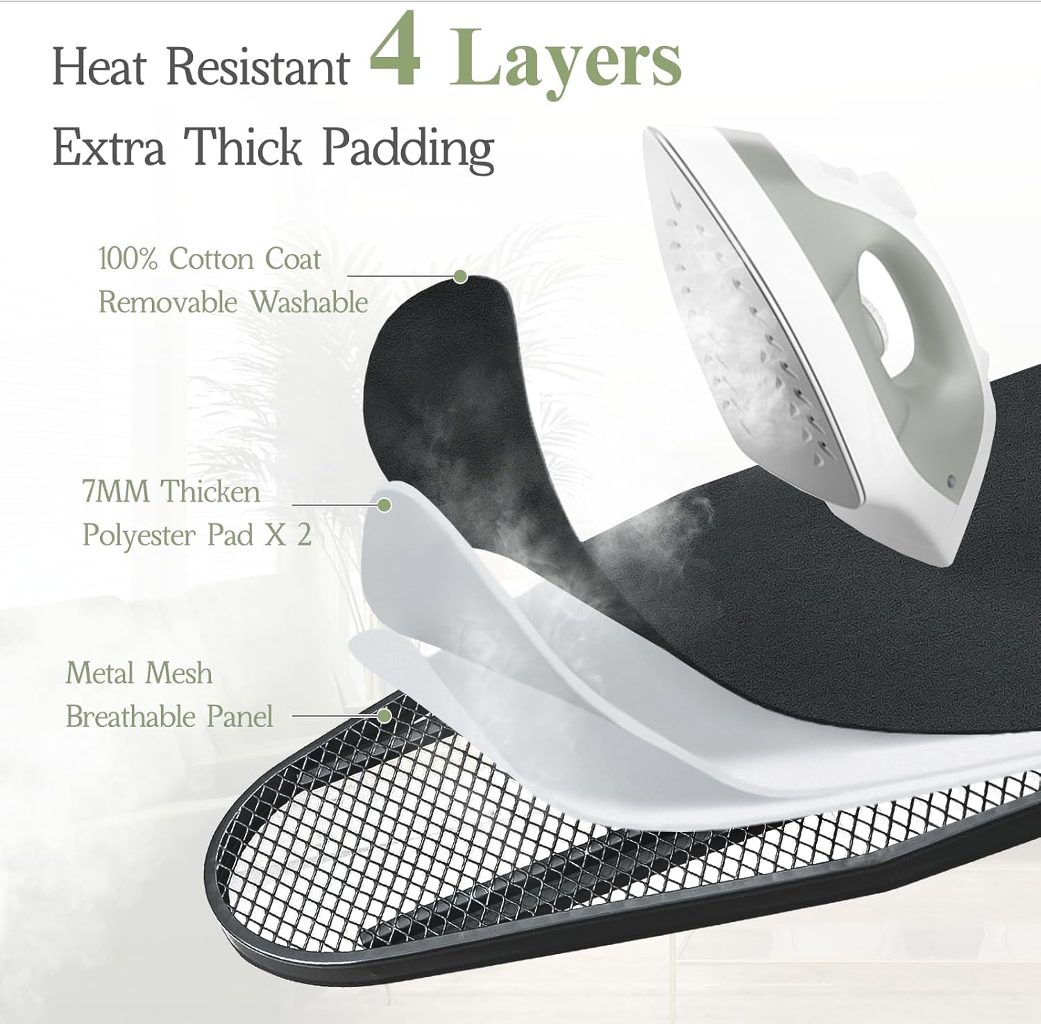 - Iron Board Cover: Heat-resistant ironing board cover with an ultra-thick, 2-layer cotton padding absorbs heat and creates an ideal ironing surface, enhancing the iron’s glide, making the task quicker and easier.