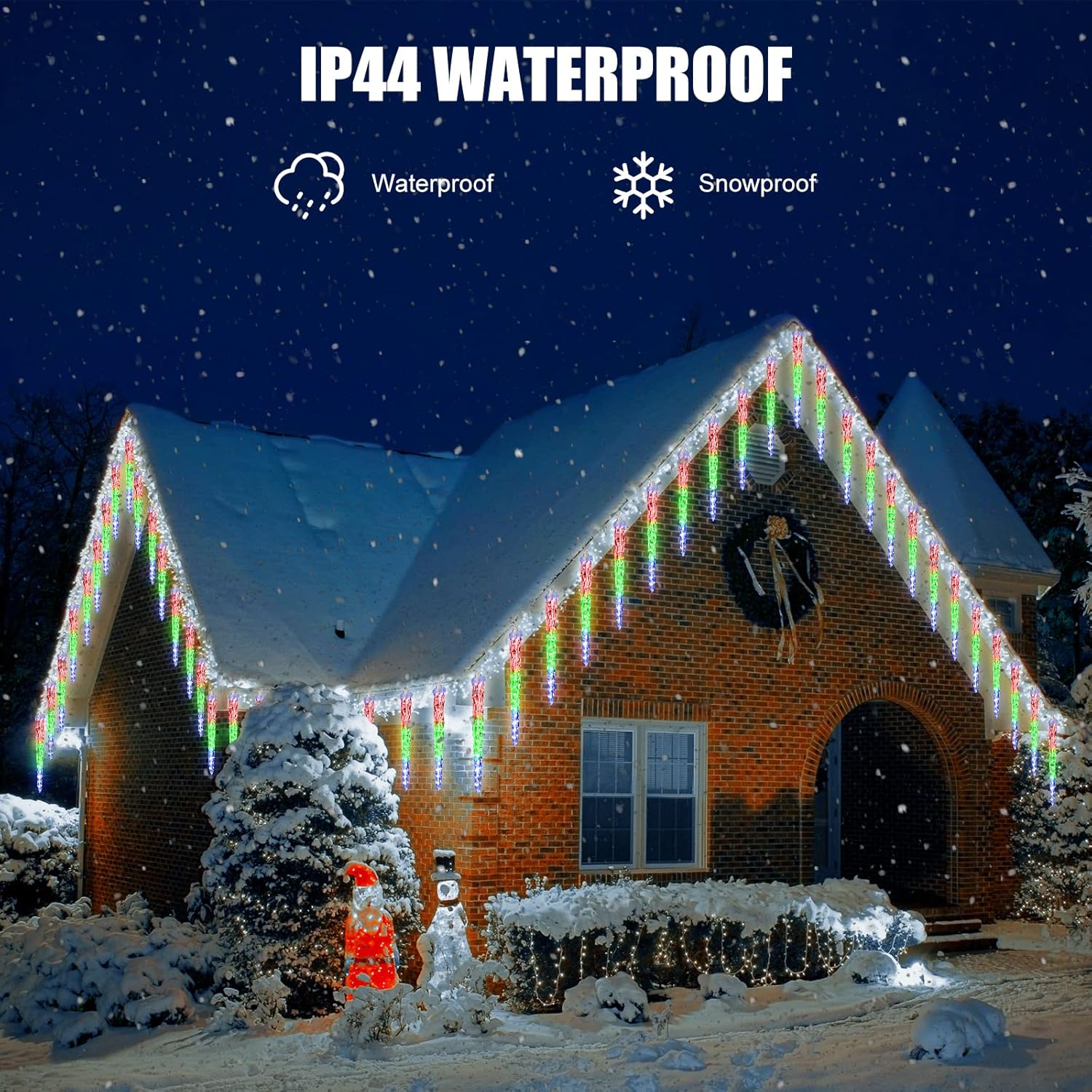 Christmas Meteor Shower Icicle Lights Outdoor, 19.8Ft With 20 Large Tube 480 LED Dropping Effect, Waterproof Decorations for House Eave Roofline, Multicolor