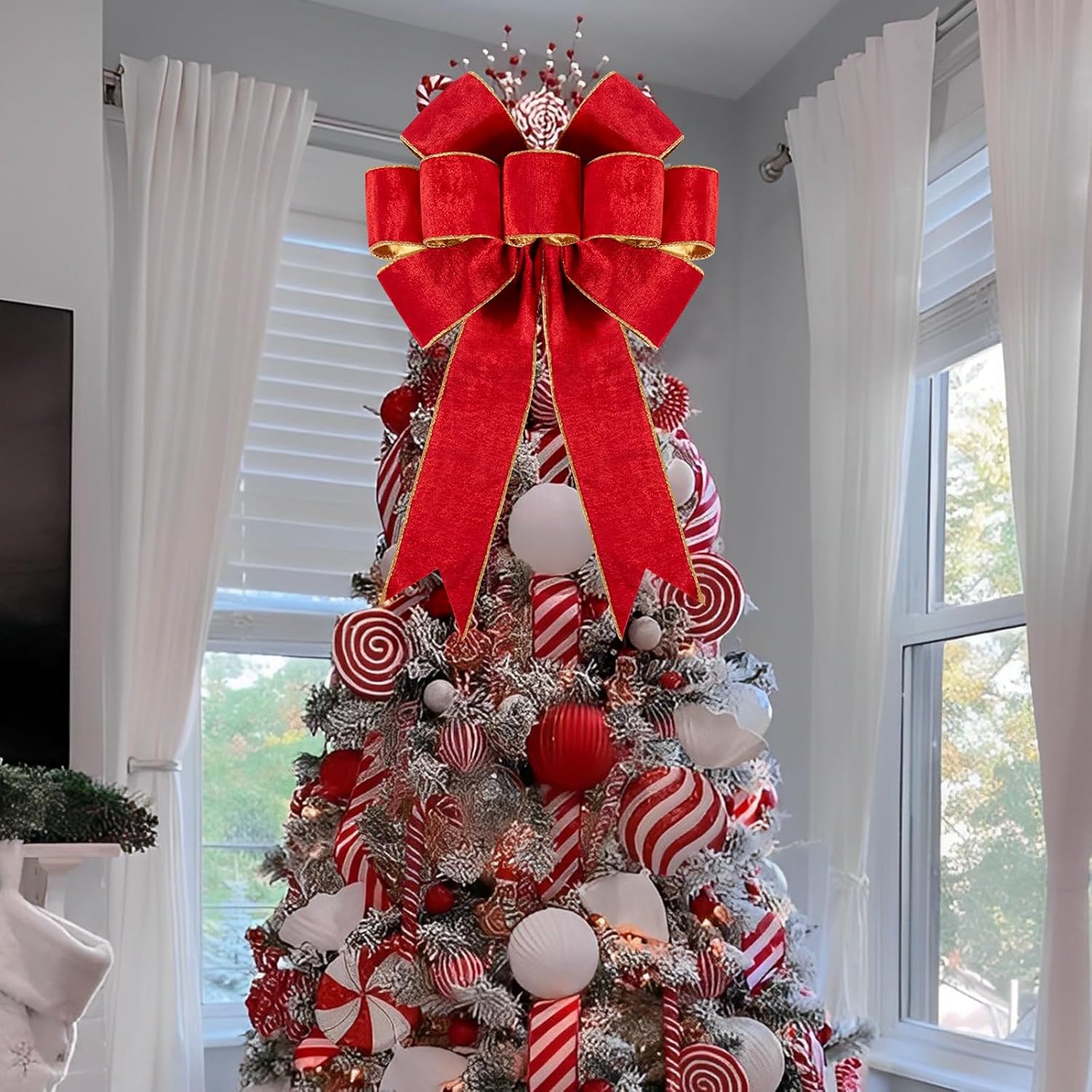 - Wide application: The velvet fabric makes large red bows particularly striking, especially when paired with traditional Christmas colors like red, green, or gold - They can be decorated on tree topper, wreaths, windows,doors, fences, fireplaces, garlands,stairs, or as standalone accents around your home, these bows are as versatile as they are beautiful
