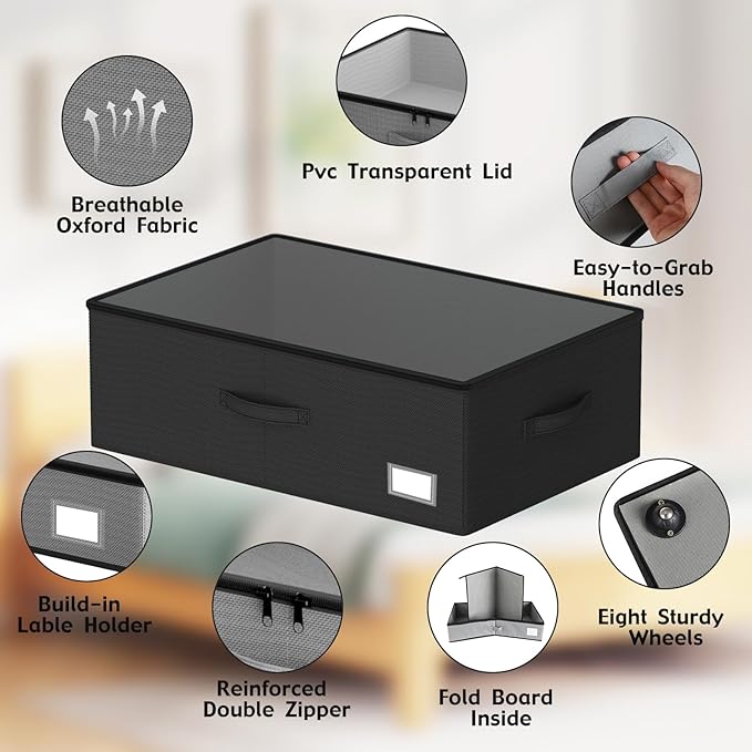 - [Easy to Move and Store]: Our EE-RoomWorld underbed storage with wheels allows for effortless mobility, making it a breeze to pull in and out from under the bed. With 8 packs of 360° rotating wheels, you'll experience smoother sliding and better support when accessing your items.