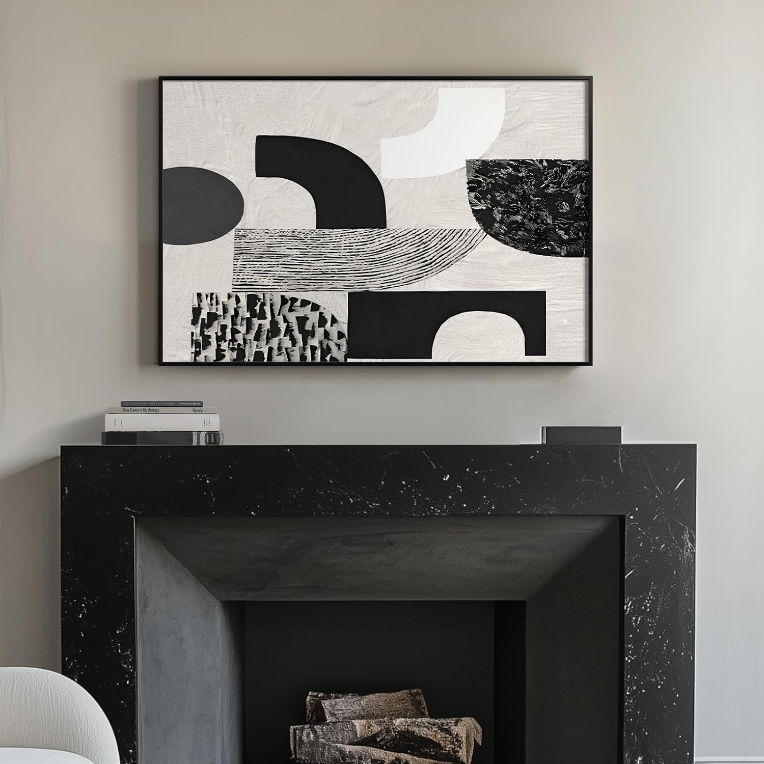 - [Framed Wall Art]: A large framed black and white abstract geometric canvas wall art, size is 24x36 inches, each painting with a sturdy, rust-resistant frame