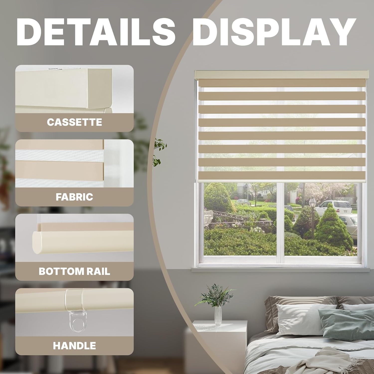 HESTIA Cordless Zebra Blinds Light Filtering Roller Shades UV Blocking Blackout Privacy Indoor Window Shades for Home Office Day and Night, Beige,26" W x 54" H