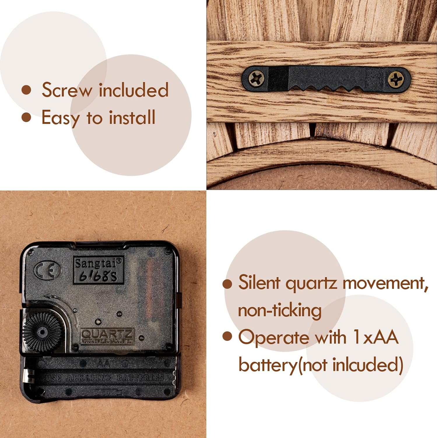 - Special Feature : Silent Clock, natural solid wood & no need assembly, wall decor
