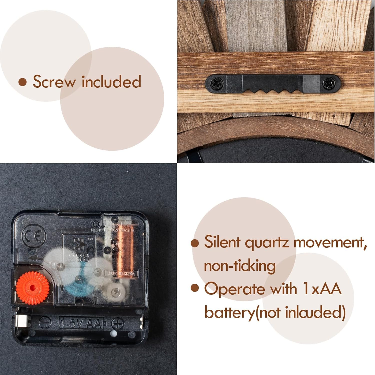 - Silent Wall Clocks: This 12 inch vintage wall clock uses a quartz movement, known for its accuracy and quiet operation, making it perfect for day and night. Honiway Wall Clock new upgrade, no need assembly, only requires 1 AA battery (not included) and comes with a screw and anchor, save your time and effort. Please note: the wall clock does not have a cover