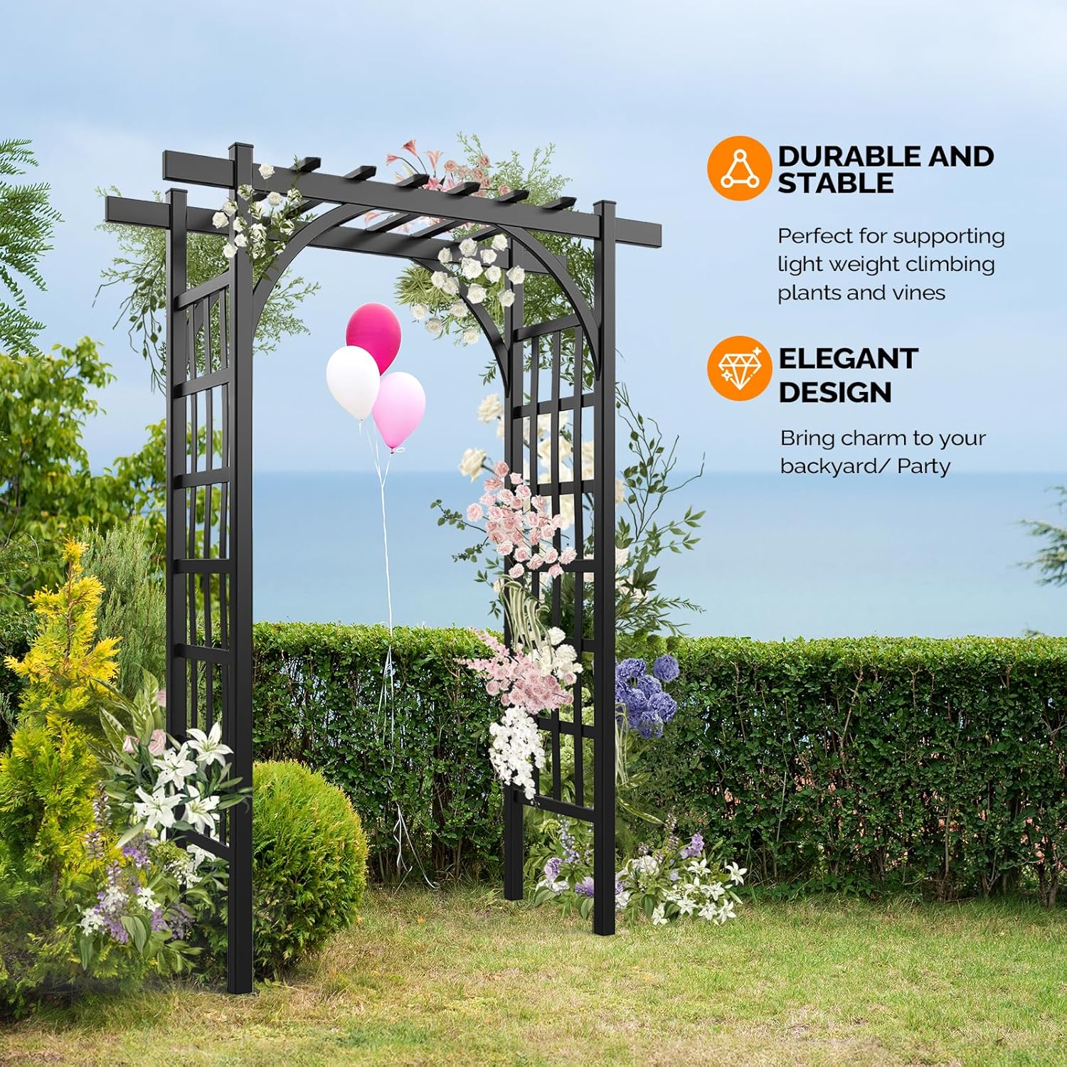 VINGLI Garden Arbor, PVC Wedding Arch for Ceremony Party, Garden Trellis for Climbing Plants Outdoor, Arch Backdrop Stand for Garden, Backyard, Wedding, Lawn (Black)