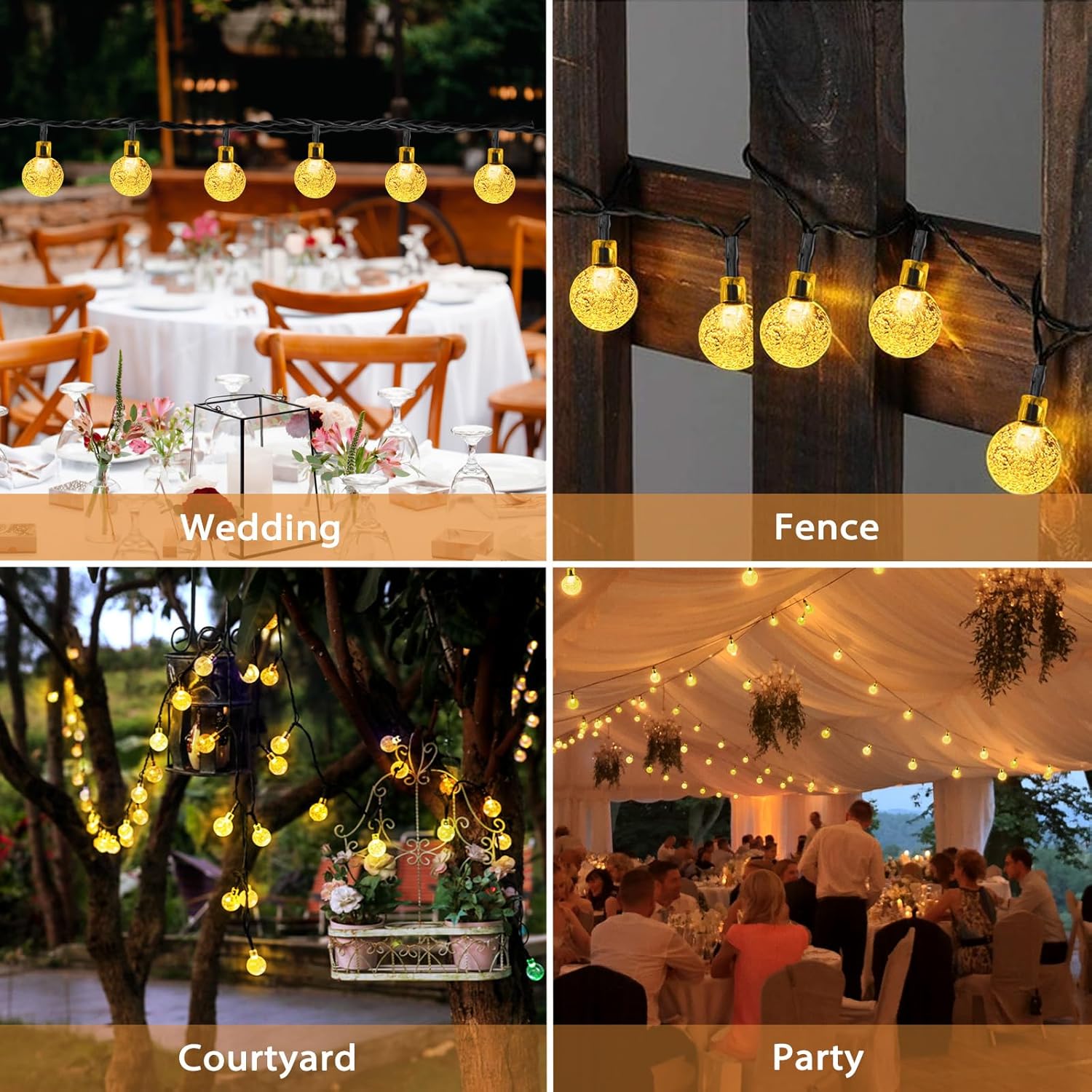 - 【New Generation - 46FT 66LEDs Crystal Globe Solar String Lights】Solar string lights outdoor waterproof is made of IP65 Waterproof material, which can withs stand all kinds of extreme weather. Each light has 66 bright LED Crystal Globe bulbs,total lenth 46FT,the diameter of each Crystal Globe is 2.3cm/0.9inch.