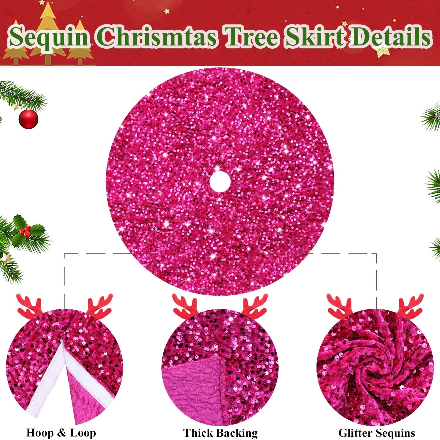 - ❄️【Sturdy Material - Hot Pink Tree Skirt Christmas】Our sequin Chritmas tree skirt is made of premium 5mm sequin fabric and thick velvet material, which can show bright color at any angle. Different from the traditional glitter trees skirt, this Christmas tree carpet won't fall off sequins, more elegant and shiny, adding festive fun to your home.