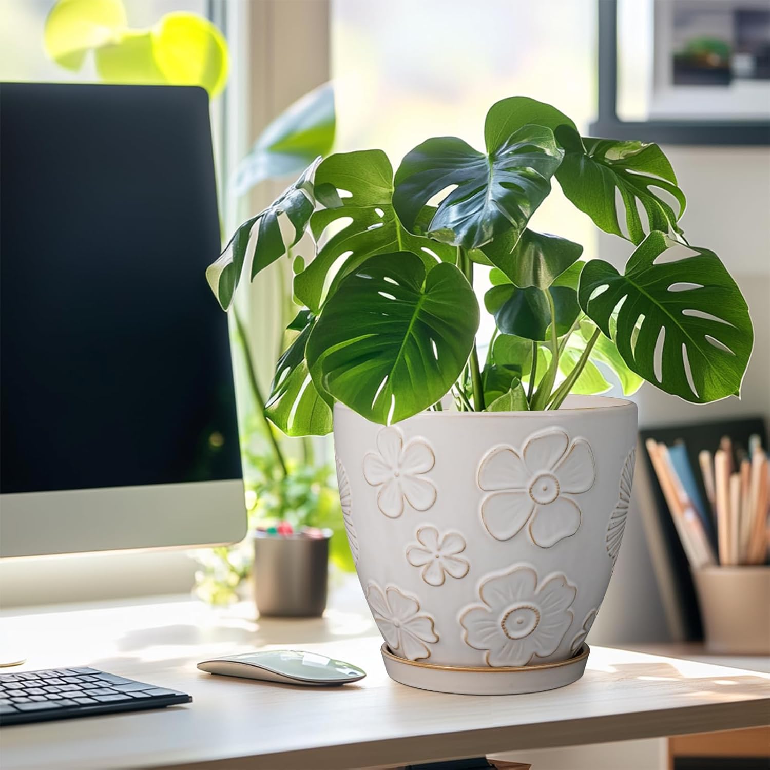 - Stylish Appearance: Our ceramic plant pot has a white main colour and a beautiful embossed petal pattern on the surface, elegant appearance making it ideal for home decor, garden decor and office decor