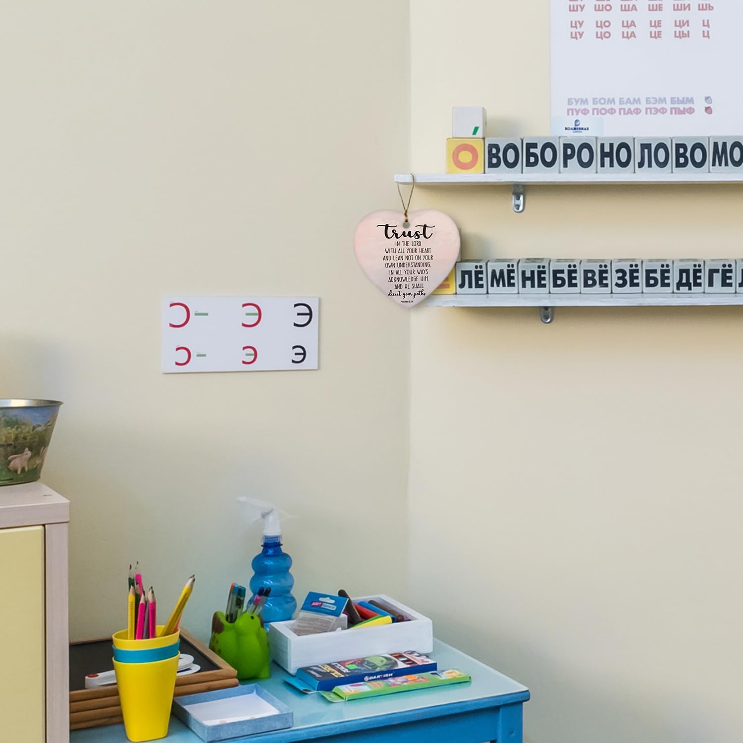 Christian Ornaments, Trust in The Lord with All Your Heart Pink Scripture Religious Ceramic Ornament Heart Keepsake Decorations, Christian Gifts for Women