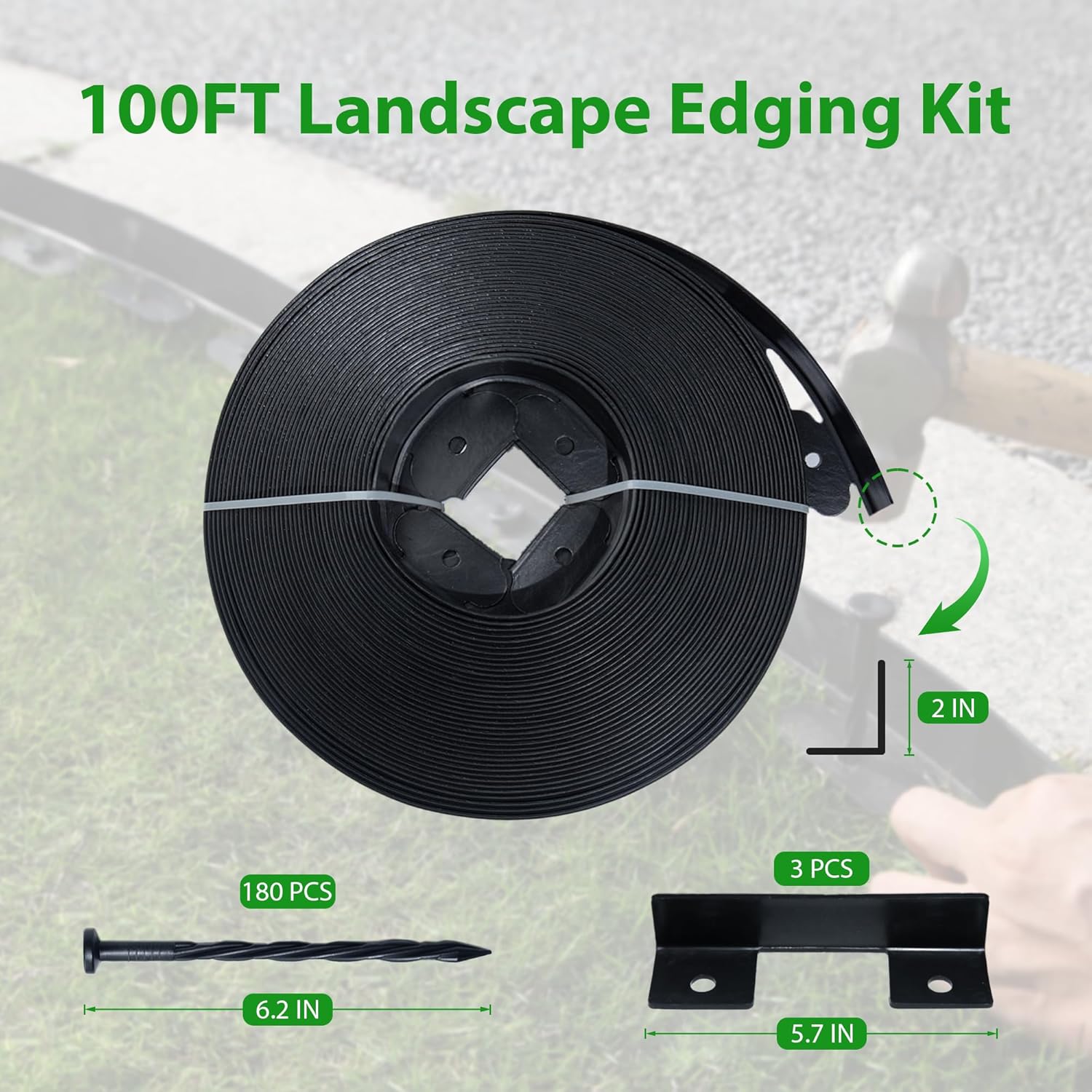 Landscape Edging Border 100 FT 2 Inch Tall with 180 Spikes, Plastic Edging for Landscaping, Garden Edging Border, Flower Bed, Paver and Lawn Edging Border, Black
