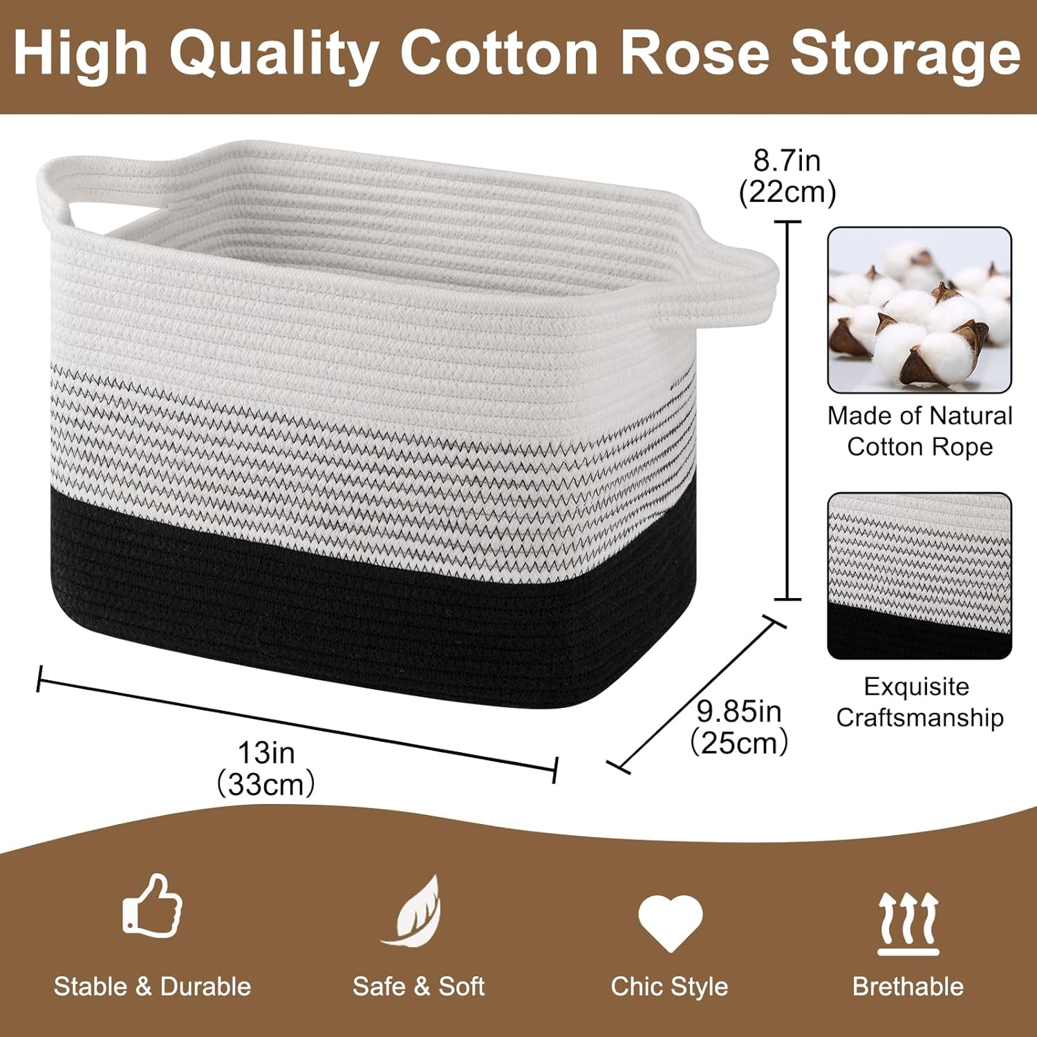 - Sturdy & Long-lasting: Made of high-quality natural cotton rope, these woven baskets are exceptionally durable & sturdy and firm enough in regular use. They can keep their shape even with heavy use. Each nursery basket with handles for easy carry
