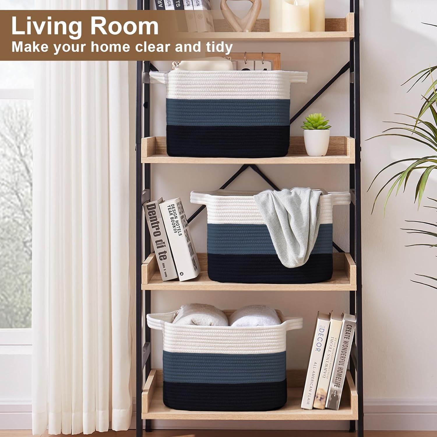 Storage Basket for Organizing, Woven Baskets for Storage, Rectangle Decorative Baskets for Shleves, Closet, Toys, Books, Nursery Organizer Bins - Pack of 3 (Gradient Blue)