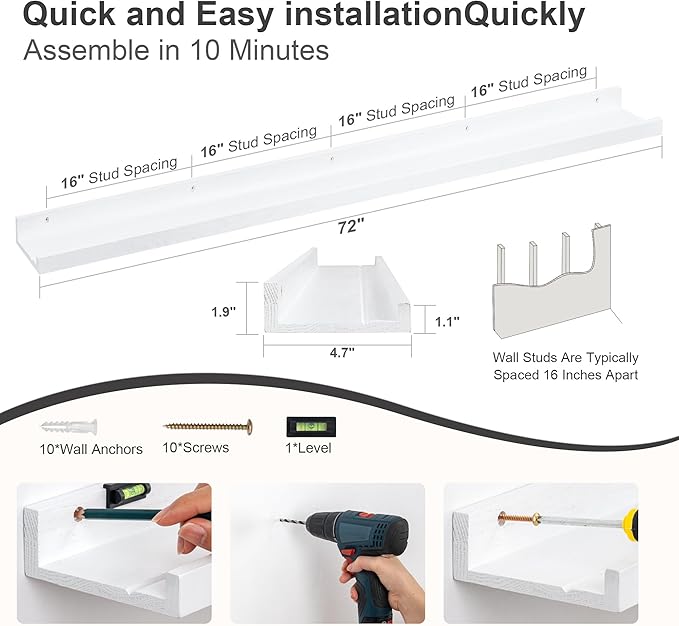 - Multi-Functional: Get creative and find more functions other than the long picture ledge shelf. FLYJOE storage ledge shelves can act as a kids' bookshelf, display shelf for collectibles figures, and more.