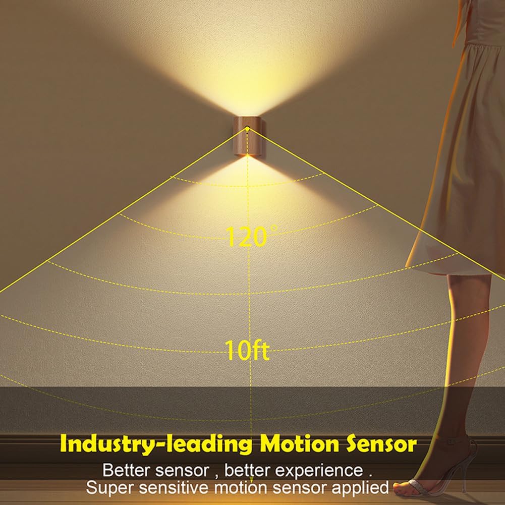 LANDGOO Wooden LED Step Lights Wall Lamp, 2700-3000K Motion Sensor Night Lights, Rechargeable Stair Lights for Hallway Indoor Lighting(White Ash Wood 2PCS)