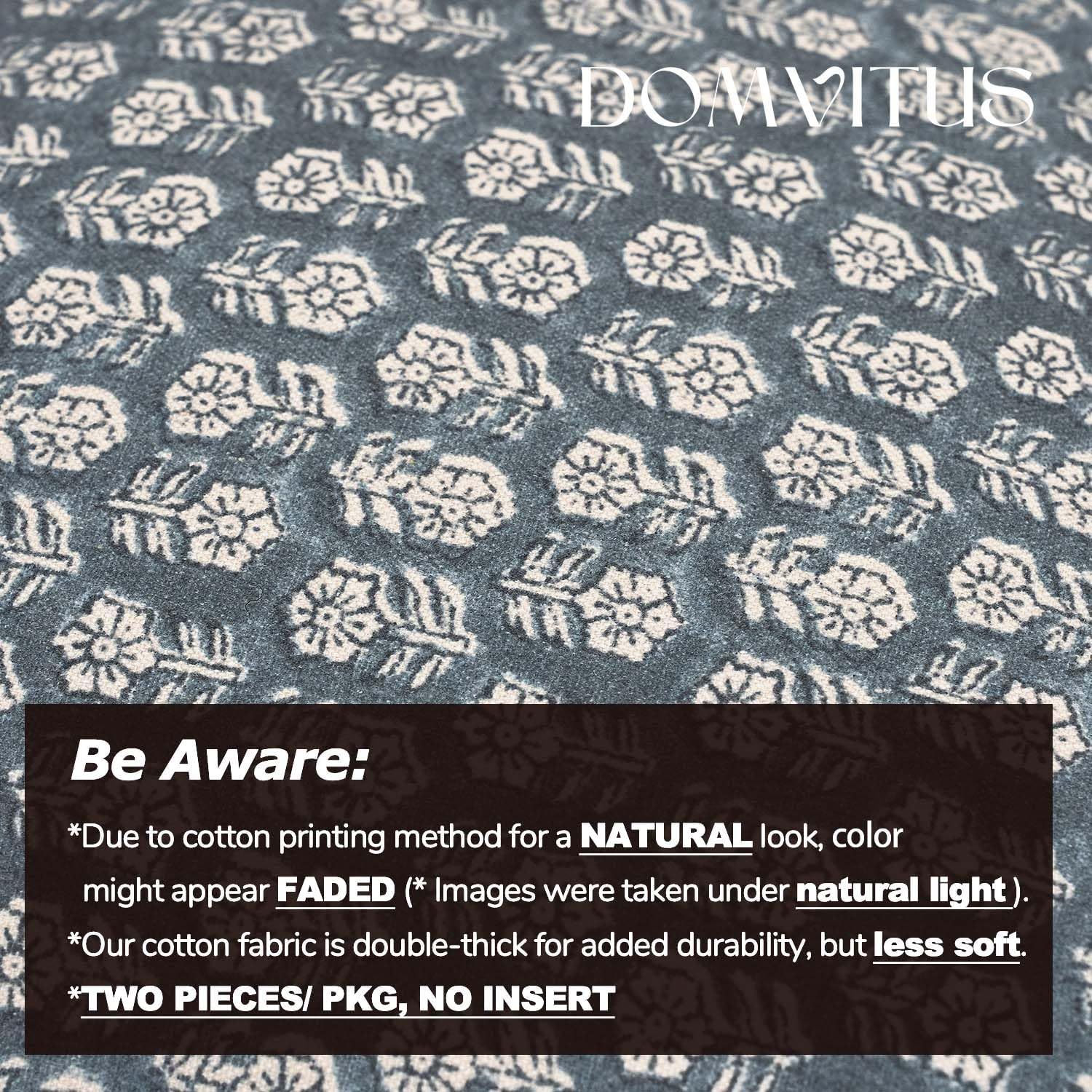 DOMVITUS Floral Pillow Covers Set of 2, Throw Pillow Covers 20x20, Floral Print Neutral Accent Decorative Pillow Covers for Living Room, Bed, Dusty Blue