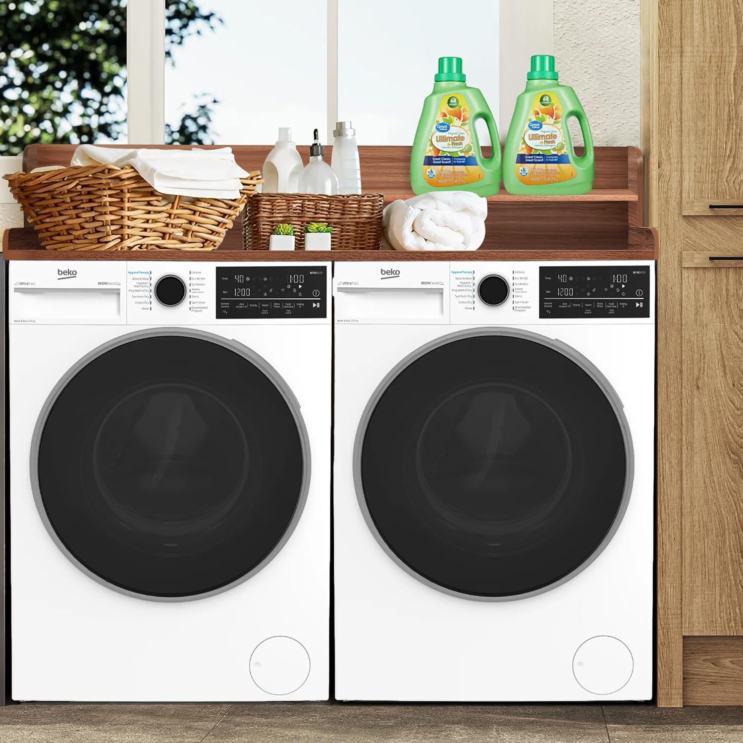 - 【Spacious and Functional】Equipped with an additional shelf(advantage compare to others), our countertop maximizes space utilization, offering ample space for all your laundry needs. Whether you're folding clothes, sorting laundry, or organizing essentials, it has got you covered. Provides a hassle-free washing and drying experience. Please refer to Pic 3 for exact measurements.
