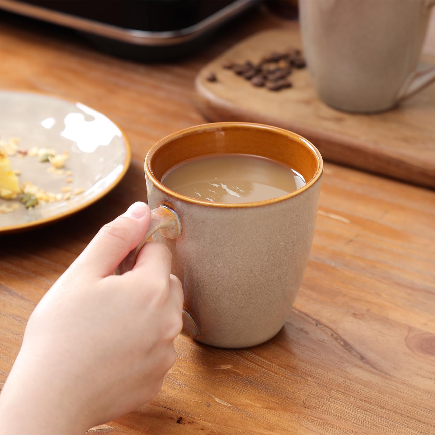 vicrays Coffee Mug Set, 12 Ounce, Set of 6, Ceramic Mug for Men, Women, Unique Glazed Mugs with Handle for Coffee, Tea, Milk, Cocoa, Cereal(Beige)