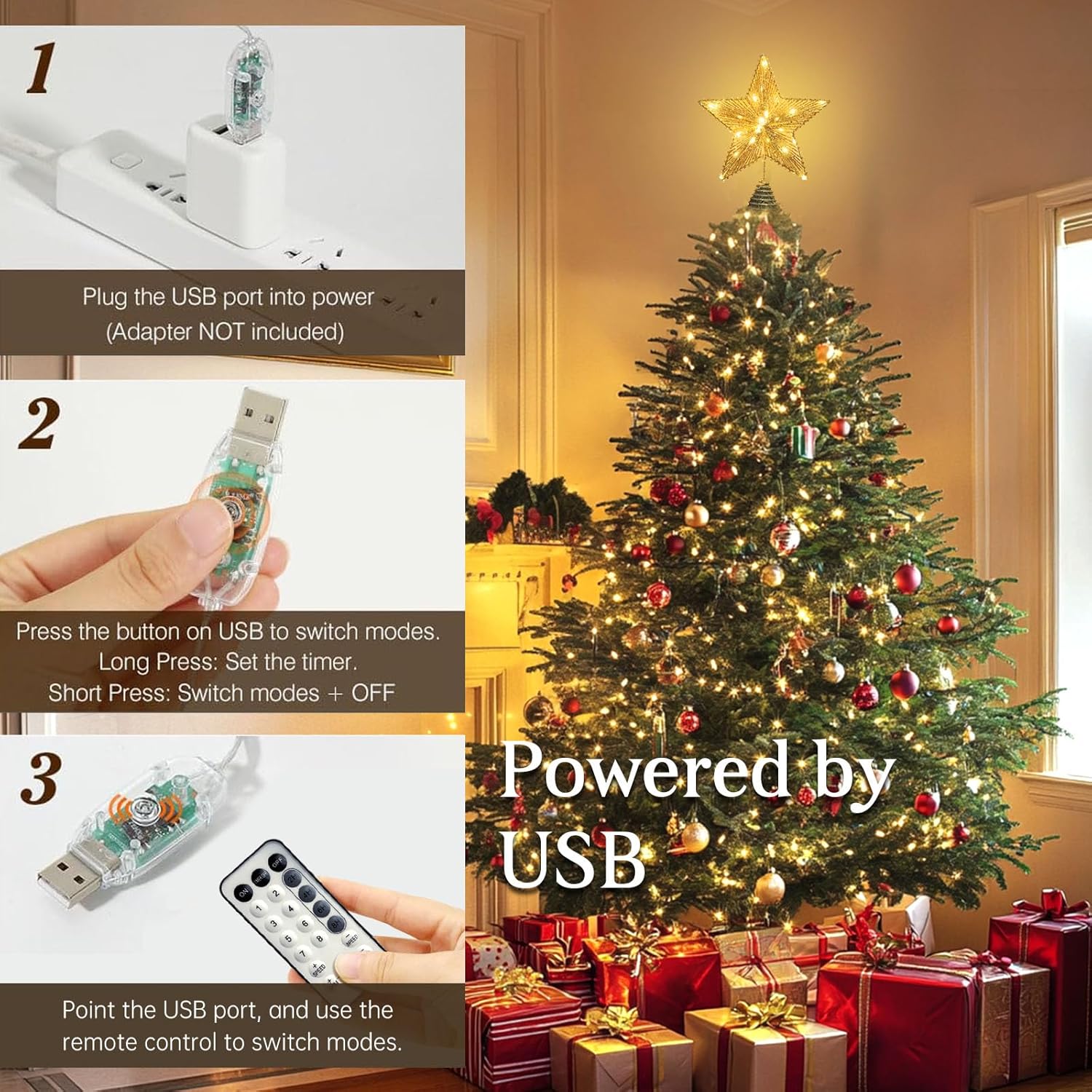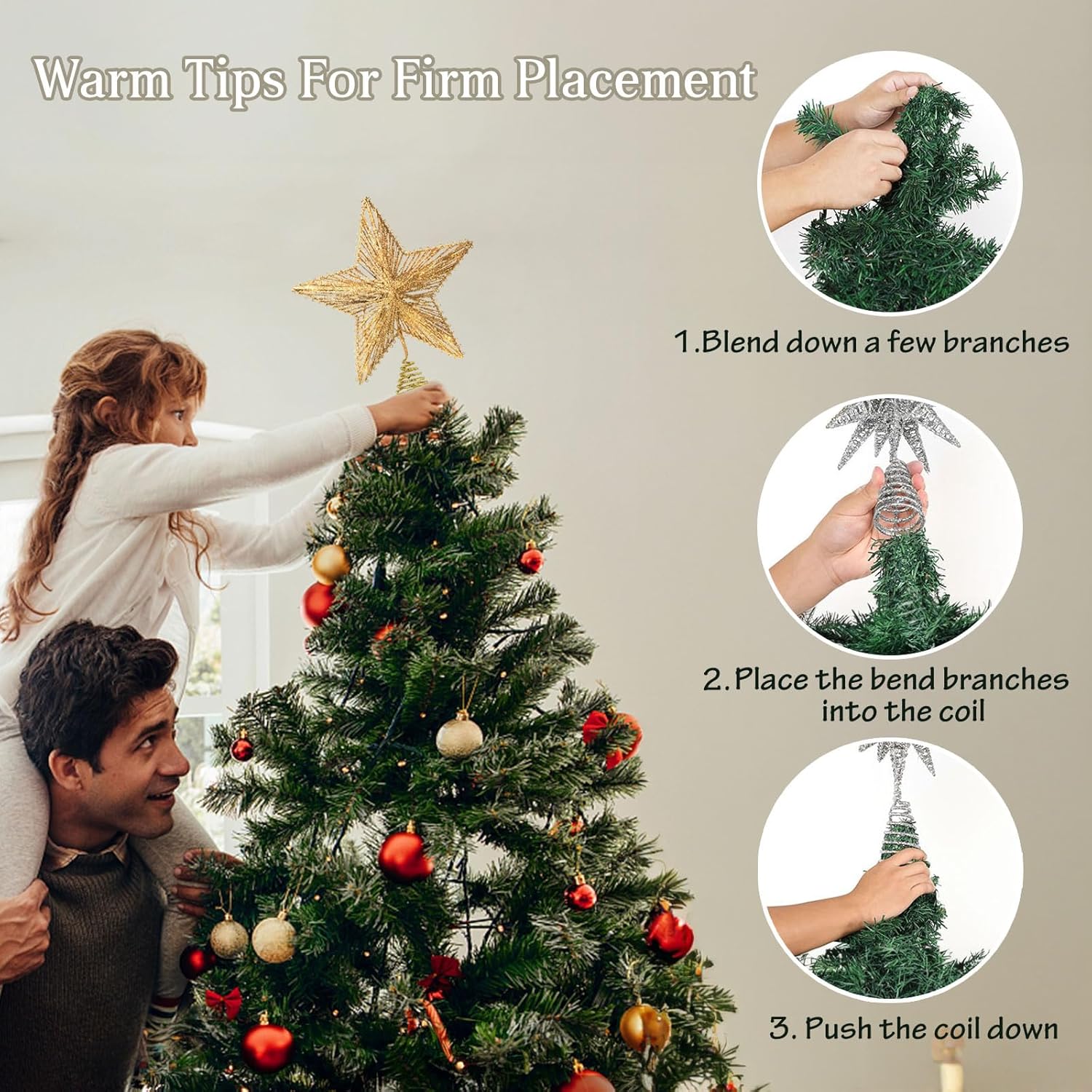 - ๐ EASILY SETUP: 5m/16.4ft long line, which means it works great either indoor or outdoor.The tree topper easily attaches to the tree, due to the stable spiral base and construction