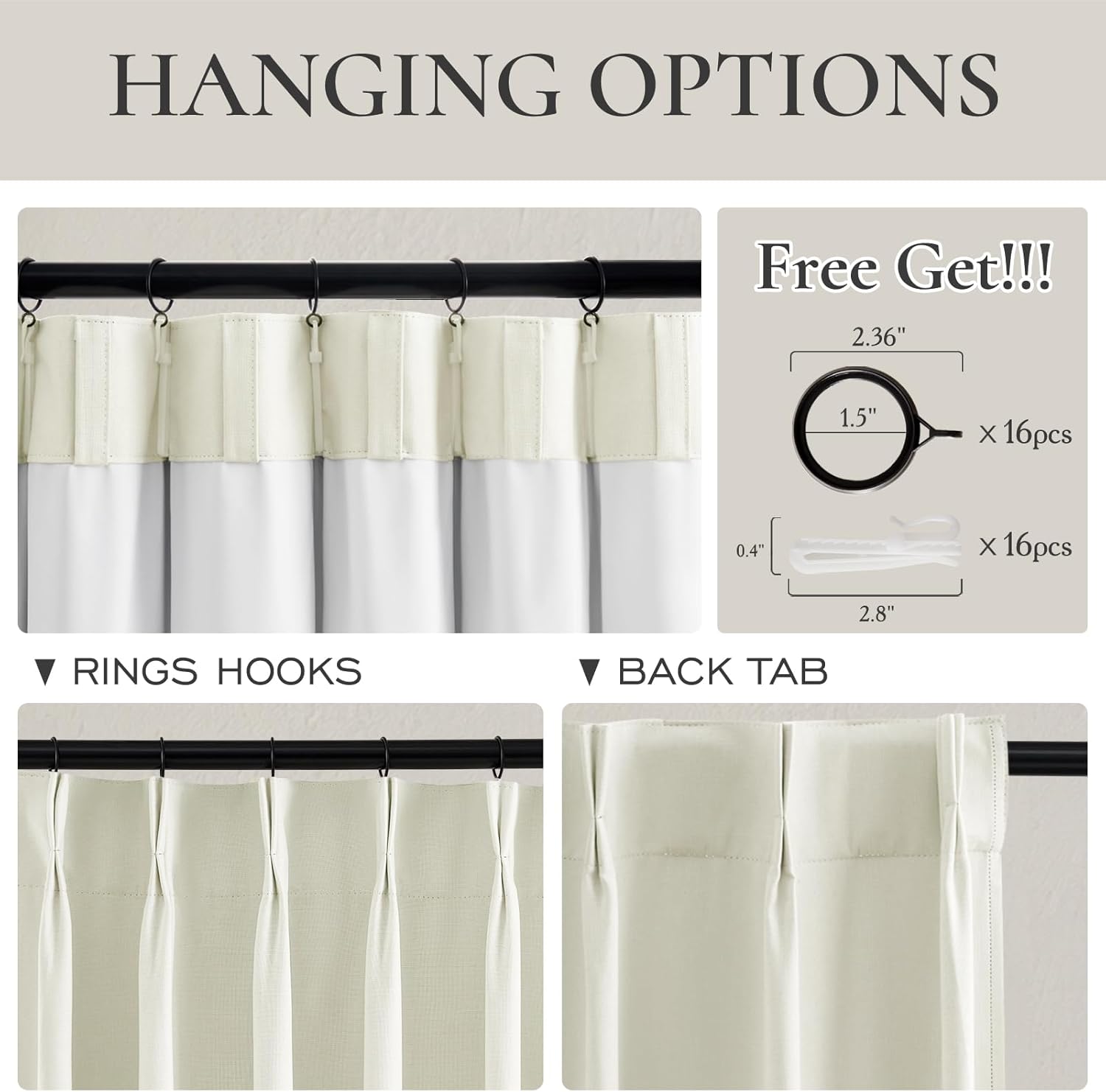 Ivory White Pinch Pleated Complete Blackout Curtains & Drapes 120 Inches Long 2 Panels Set, Flax Linen Room Darkening Soundproof Window Curtain for Bedroom/Living Room Track System(40"Wx120"L)