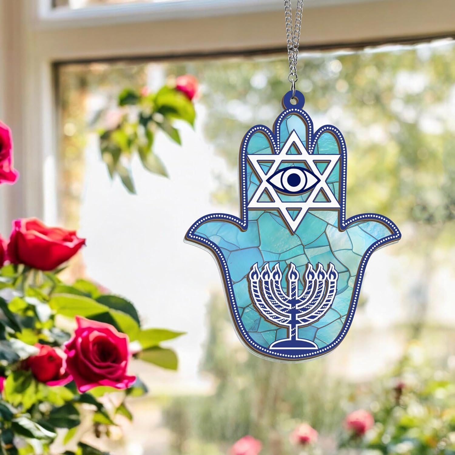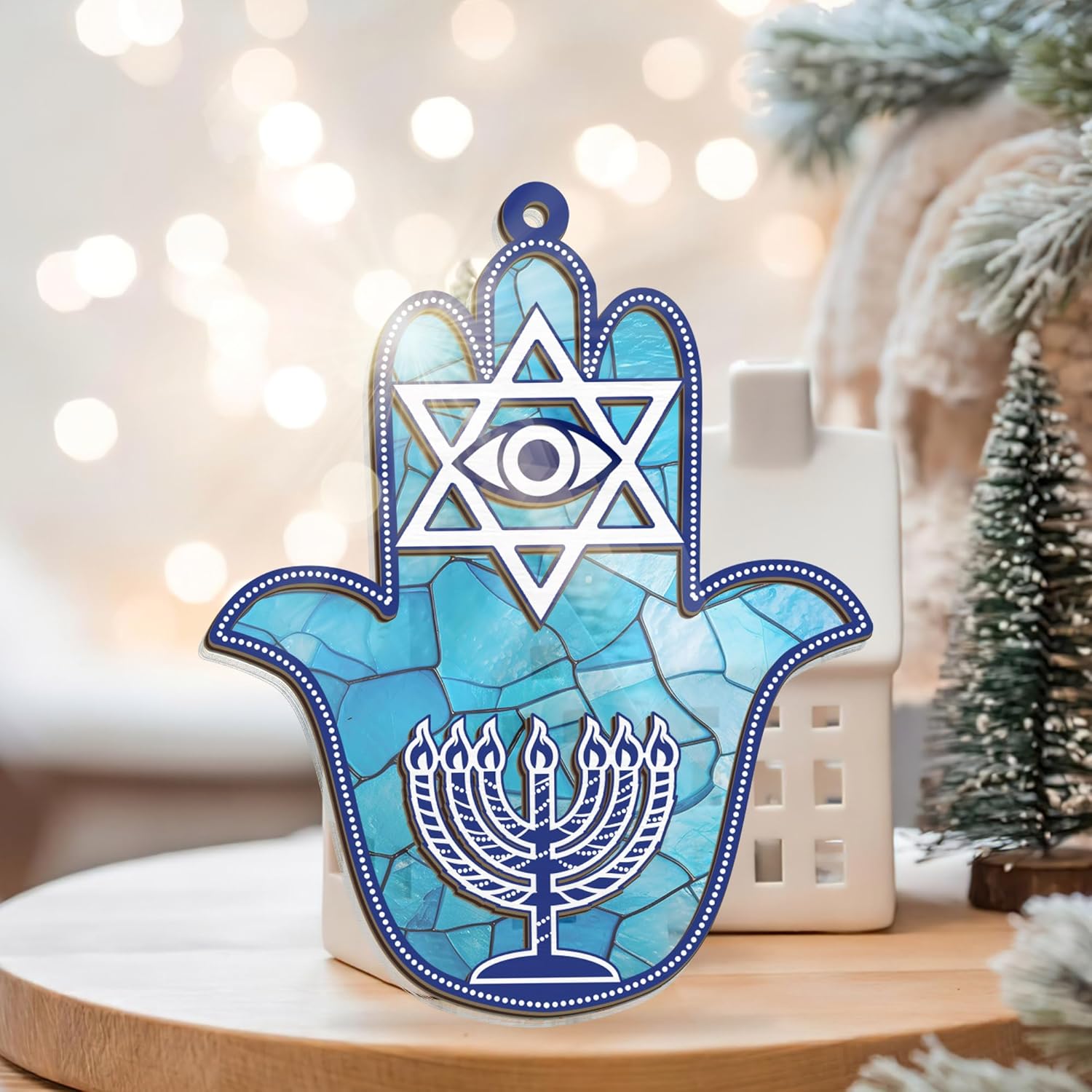 - HANUKKAH GIFTS FOR WOMEN, MEN – Celebrate the profound symbolism of the Hamsa protection amulet with our exquisite suncatchers for windows hanging. Adorned with the Star of David and Blue Evil Eye design, these house warming gifts for men, women, good luck gifts for mom, friends bring a serene touch to your Hanukkah and Jewish spirit to your room, wall decor.