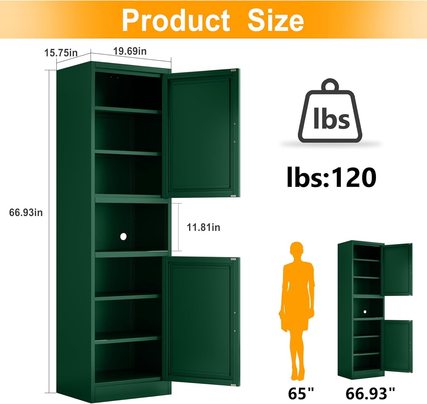 - 🛒【Large Storage Space】: The product size of the metal storage cabinet is 66.93"H x 19.69" W x 15.75 "D, which can be used in bathrooms, offices, study rooms, livingrooms, kitchens, classrooms, etc.