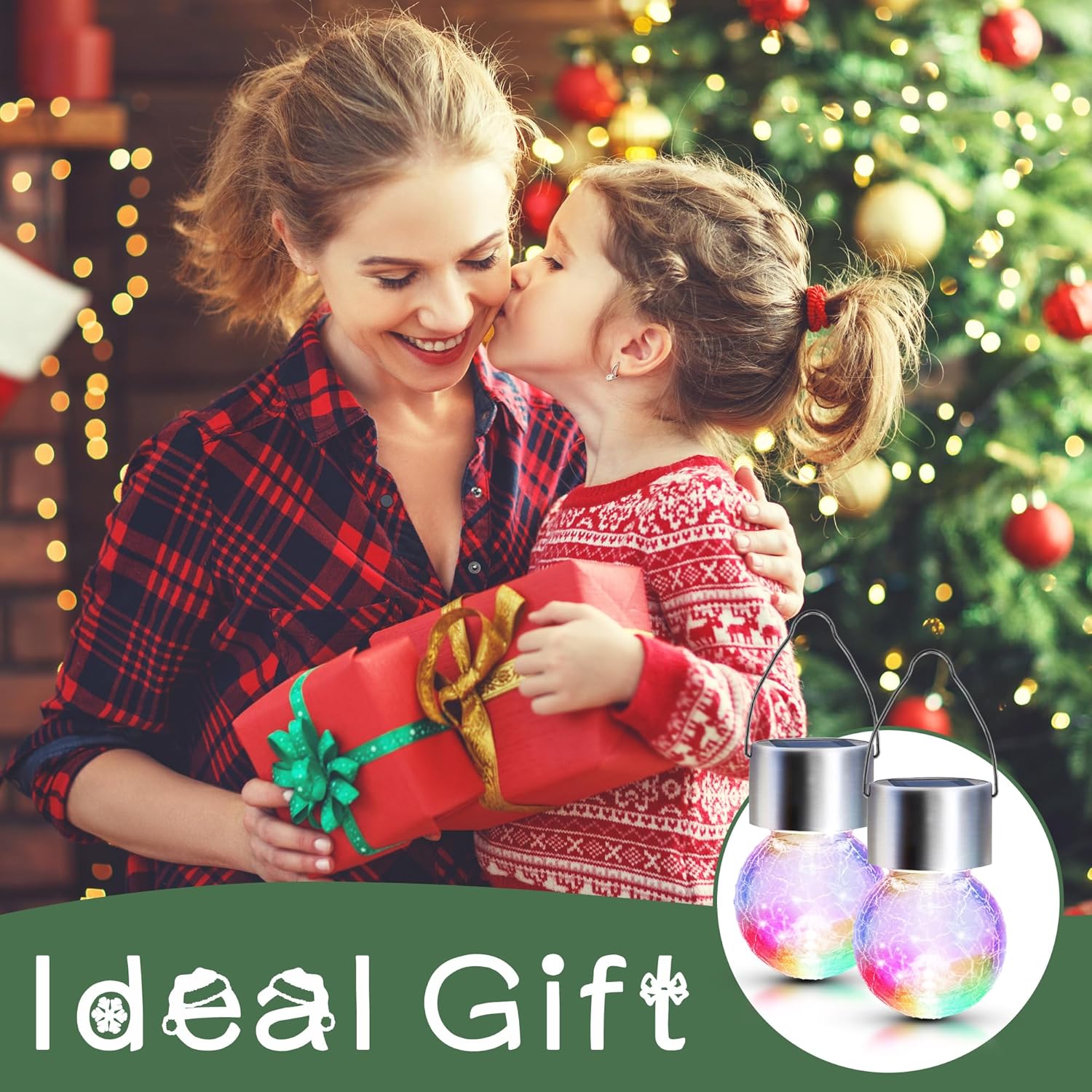 GIGALUMI 24 Pack Solar Outdoor Lights, Solar Hanging Lights for Christmas Decoration-Cracked Glass Solar Lights Outdoor Waterproof for Garden, Yard, Fence, Tree(Color Changing)