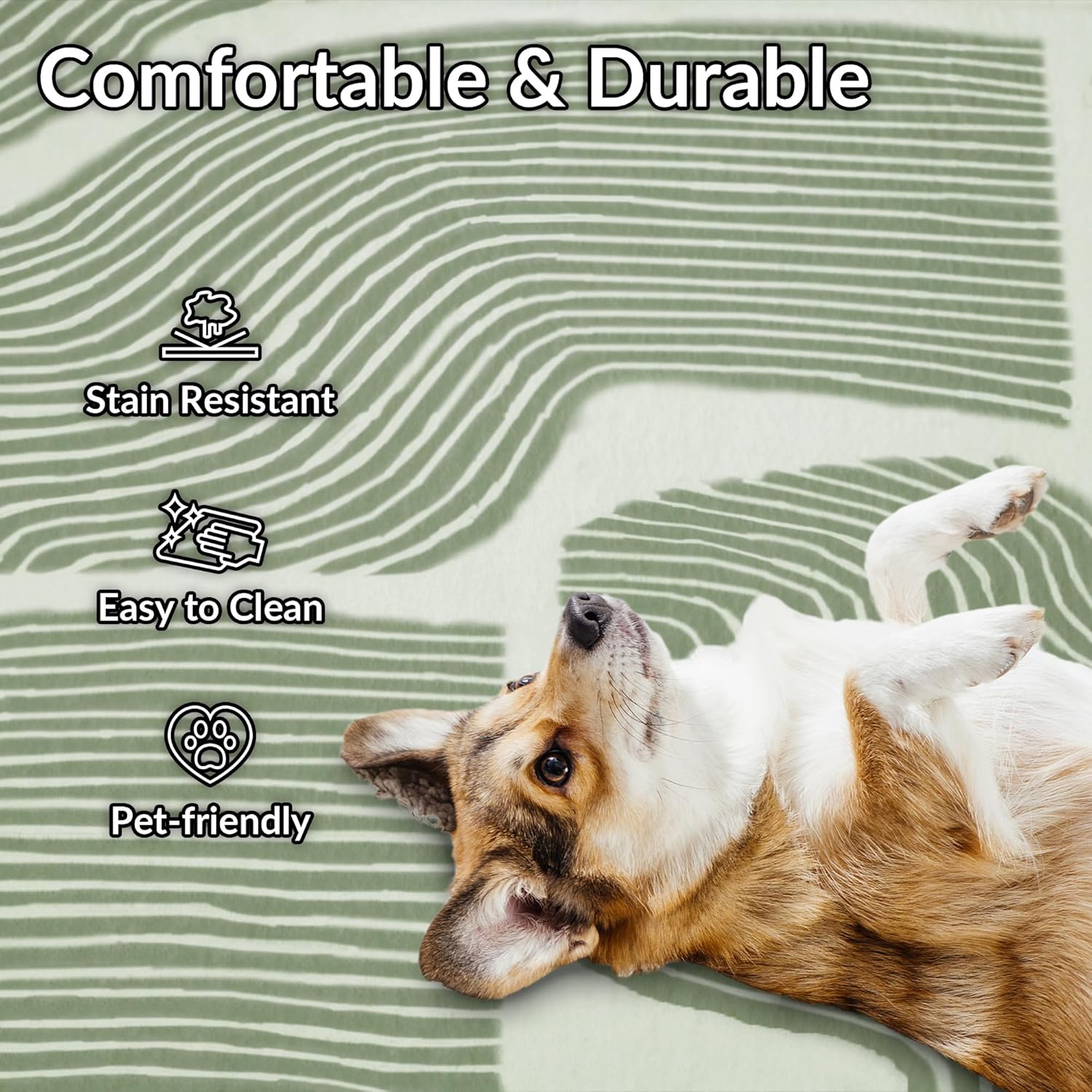 Zen Garden Area Rug - Ultra Soft Area Rug 5x7, Non Slip, Stain Resistant Living Room Rug, Washable Area Rugs for Living Room, Rugs for Bedroom (Green, 5x7)